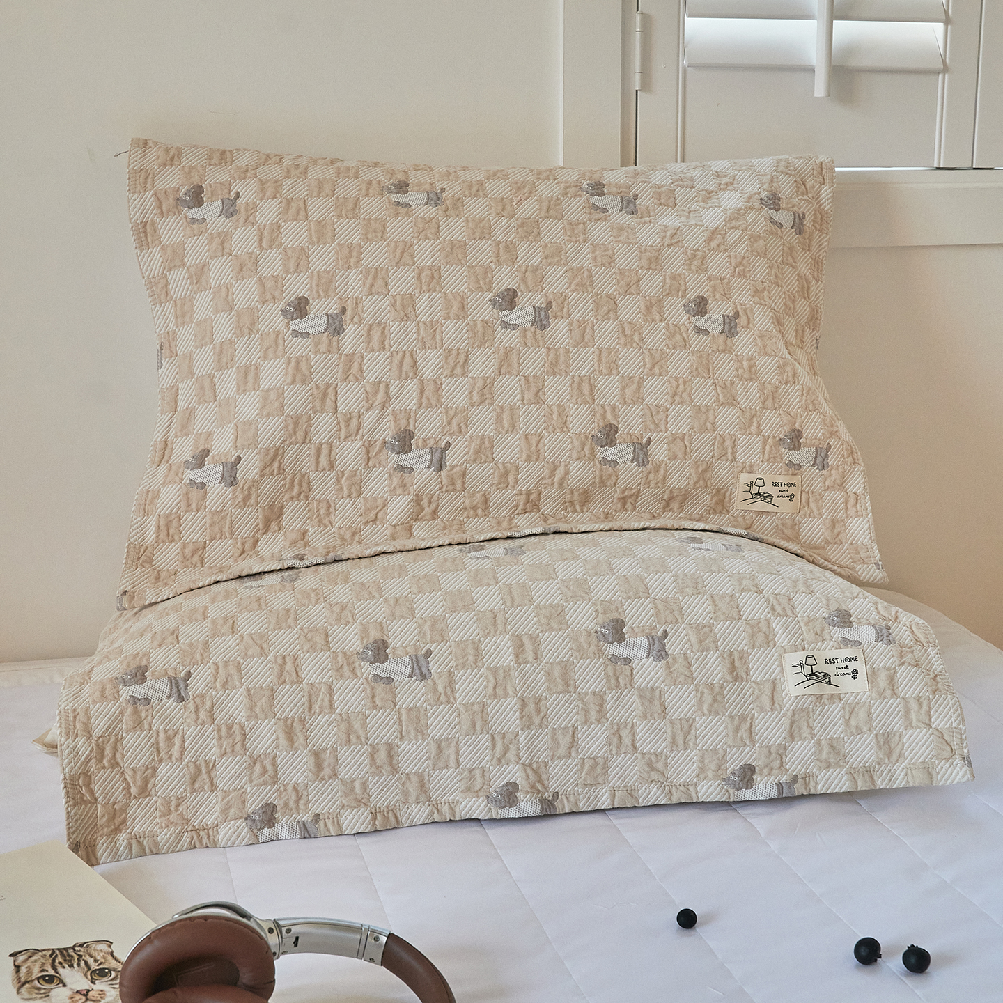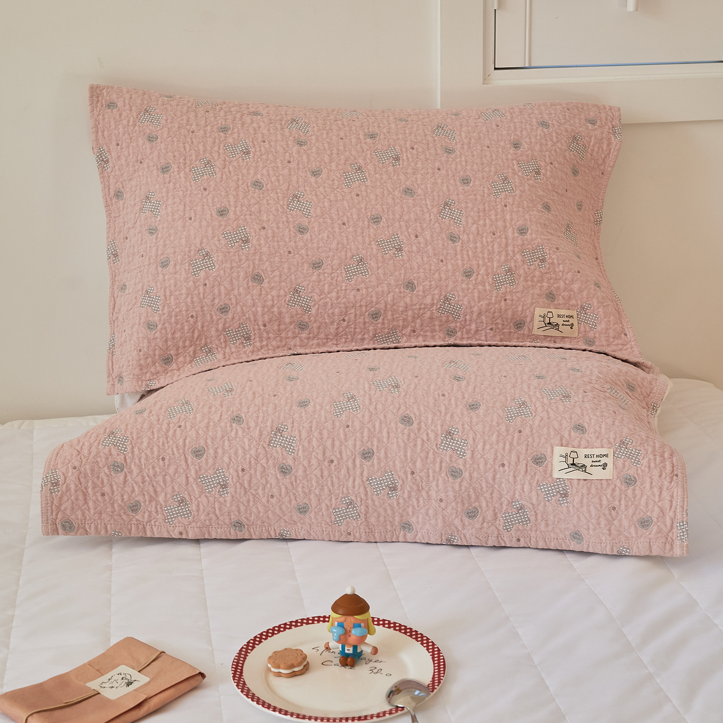(总)沐瑟家纺 2026新款纯棉四层纱布枕巾-叮叮狗和浅跳兔,叮叮狗-灰色,叮叮狗-粉色,叮叮狗-咖色,浅跳兔-粉色,浅跳兔-灰色,浅跳兔-咖色,组合图
