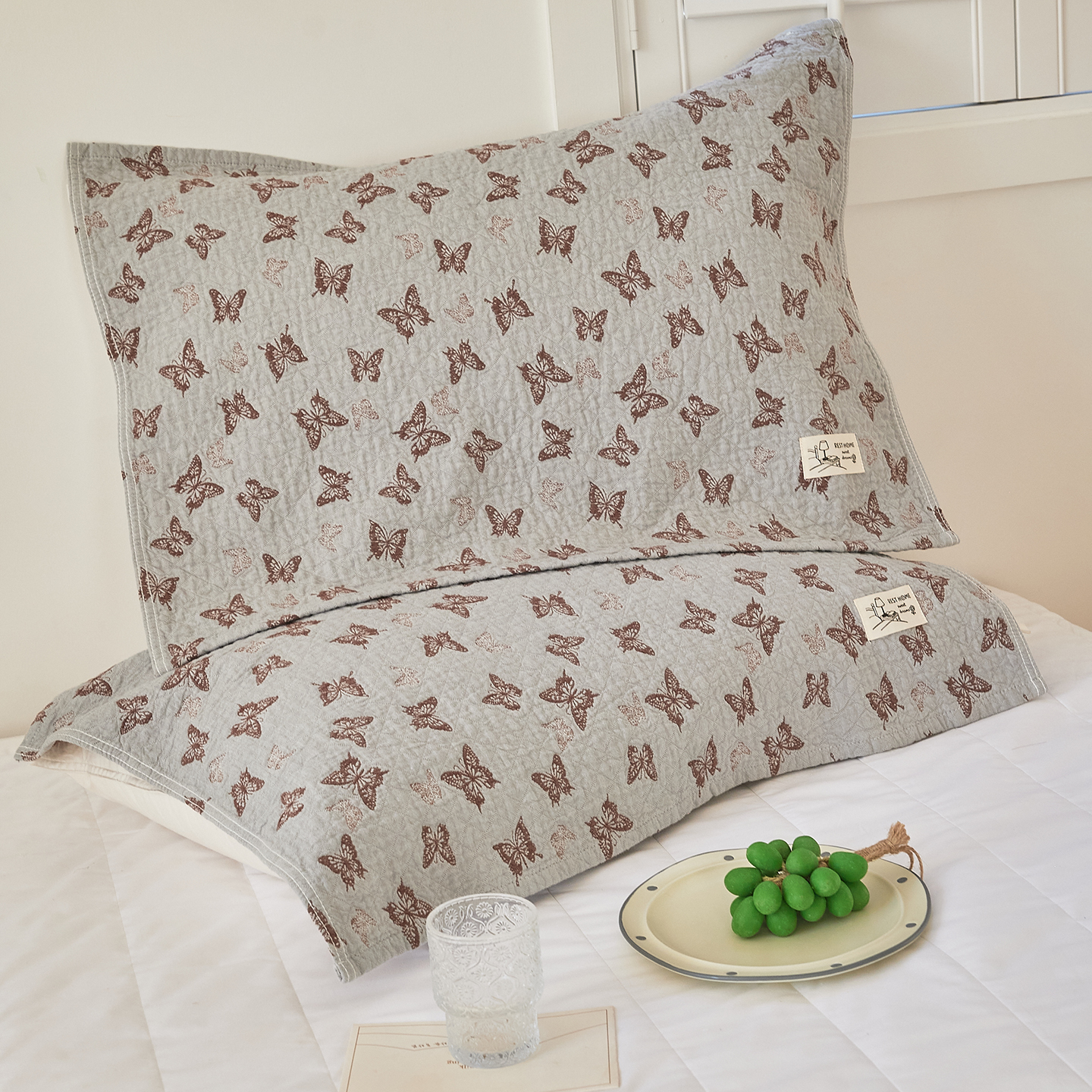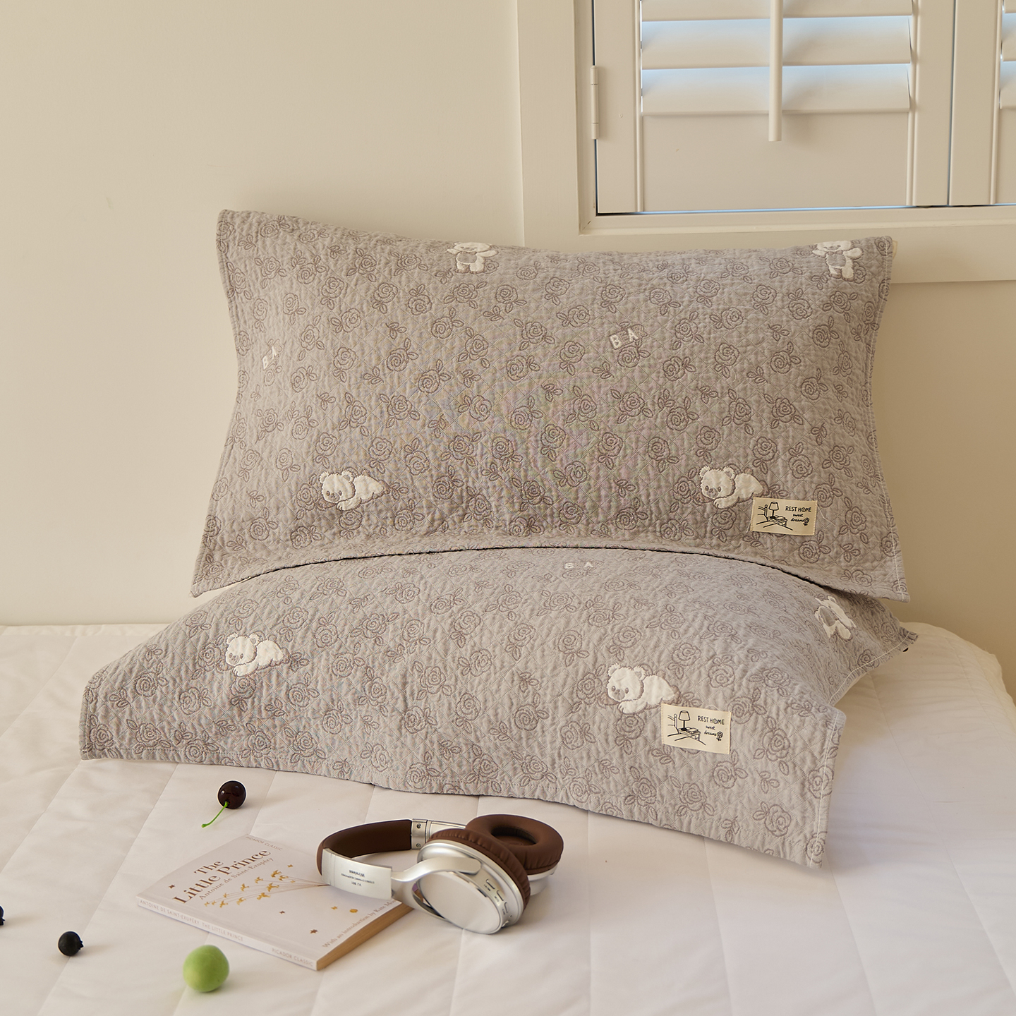 沐瑟家纺 2026新款安心棉枕巾 花釉-灰色