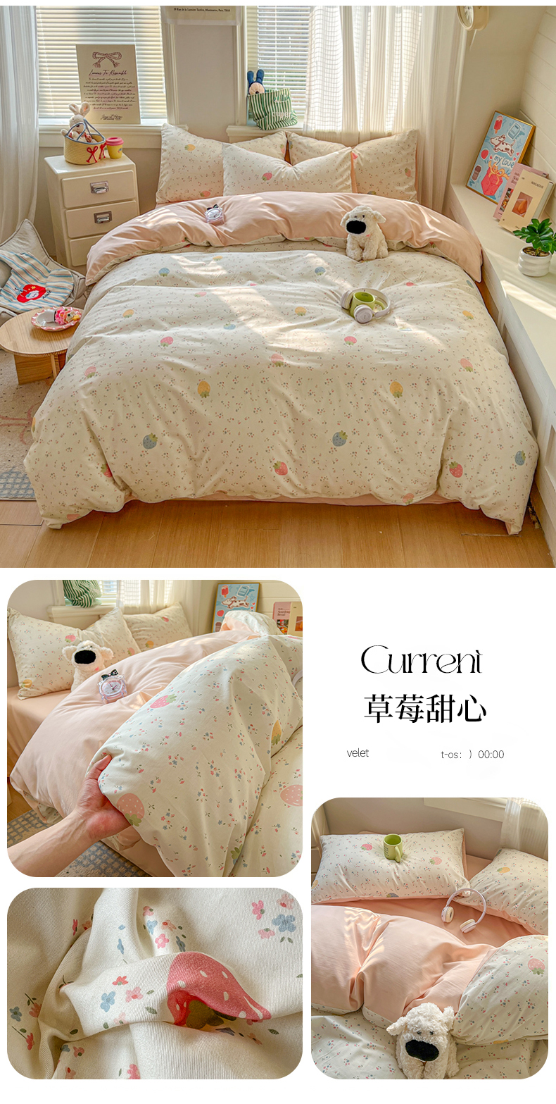 当前位置: 91家纺网 > 商品网购 > 床品套件 > 四件套 > 全棉普通四件套 > 漫仙阁家纺 2026新款纯棉学生宿舍A版100%新疆棉B版古法水洗三件套全棉四件套草莓甜心