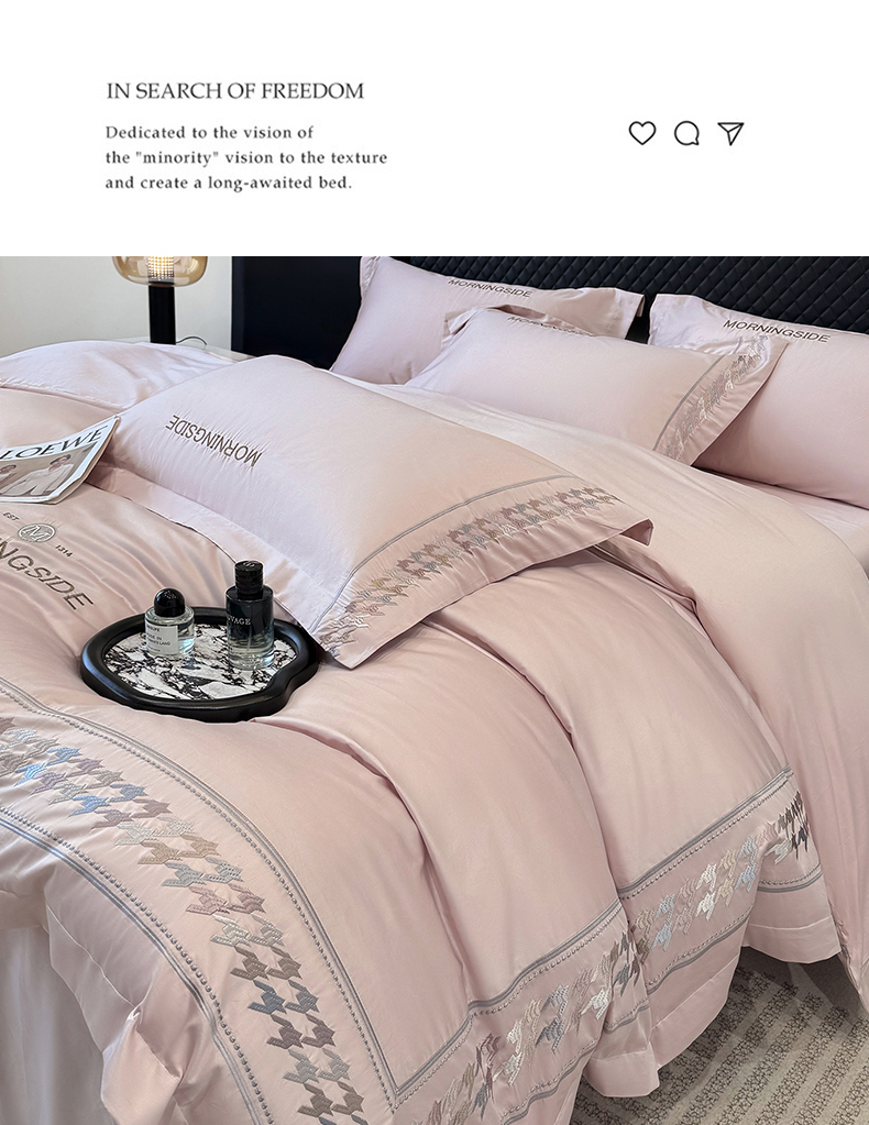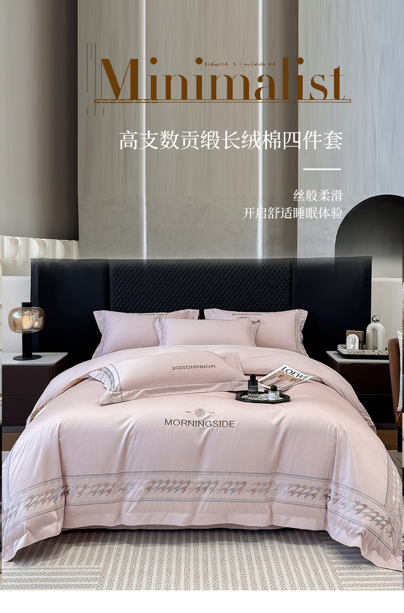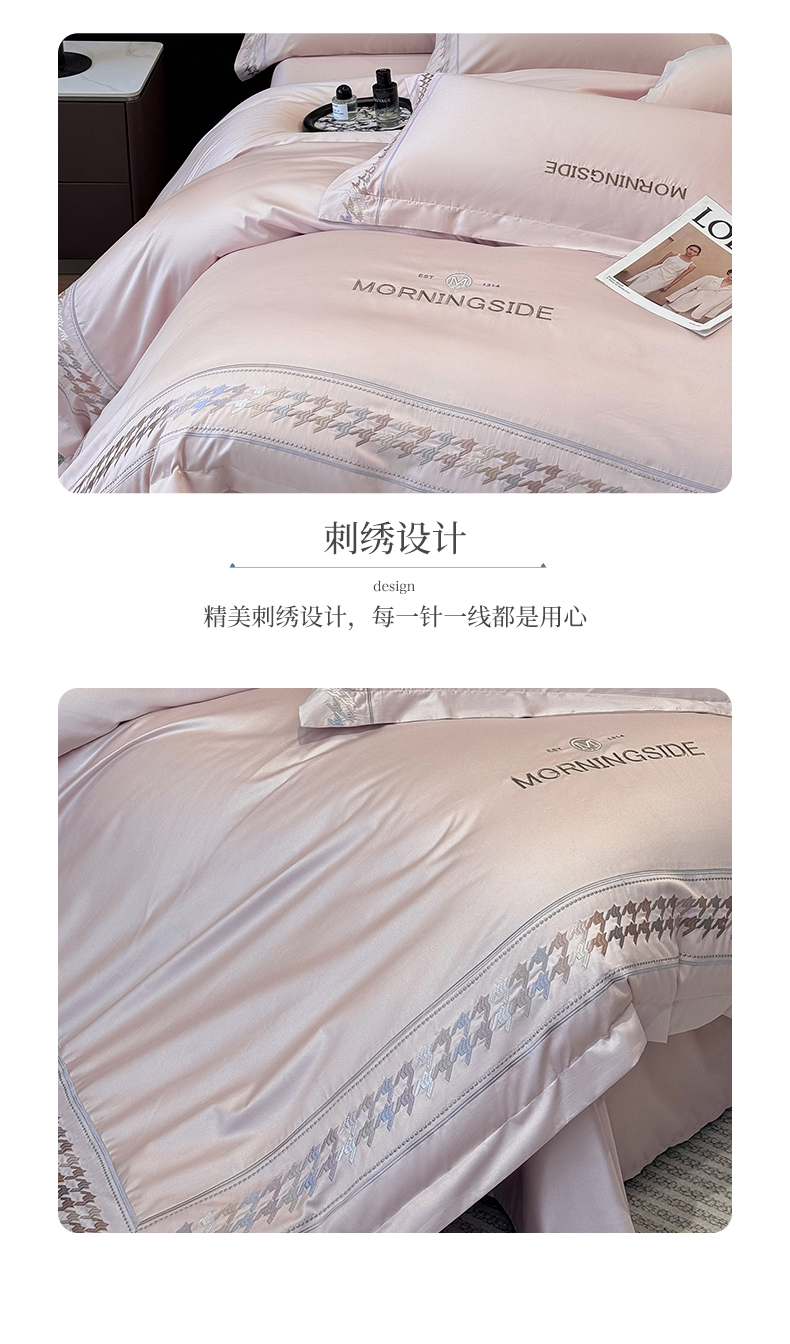 商品名称:苏美 2026春夏新款高档礼盒装50*50S贡缎长绒棉刺绣四件套100%纯棉全棉轻奢床品-千鸟格 千鸟格-粉