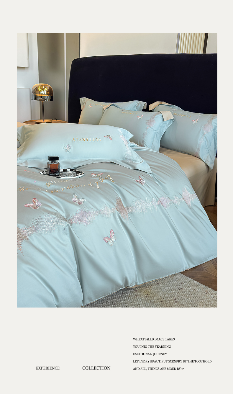 (总)桃园 2025新款纯棉全棉长绒棉刺绣绣花四件套(高端礼盒)-叶语,叶语-飘蓝,叶语-轻奢粉,叶语-绅士灰,叶语-香槟金