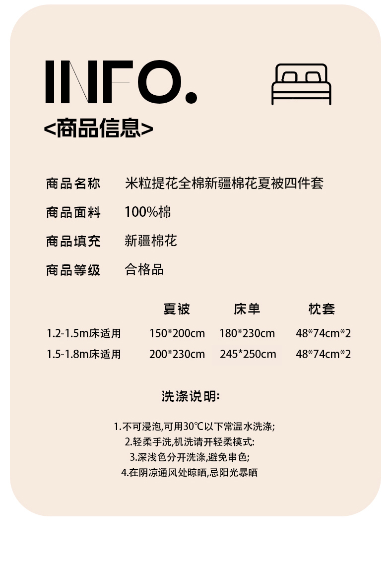 当前位置: 91家纺网 > 商品网购 > 床品套件 > 四件套 > 夏被四件套 > 被窝家纺 2026新款米粒提花全棉水洗棉新疆棉花夏被夏凉被空调被四件套 组合图(仅供展示不可下单)