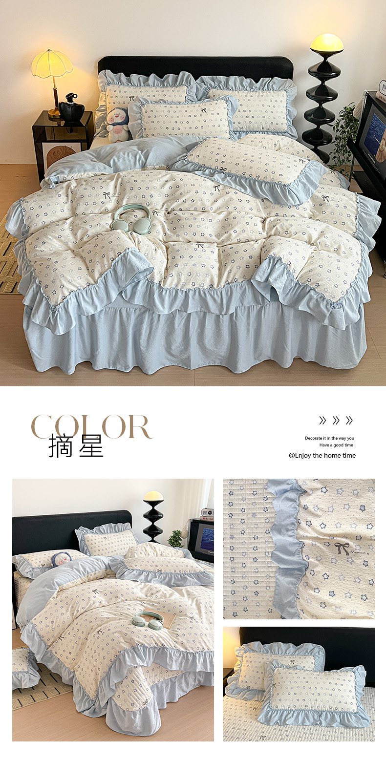 (总)富米莱(原臻工厂) 2026新款法式赫本风大花边A类古法仿棉云感纱床盖床裙四件套-场景二,豹纹猫咪,狗狗家族,花间谣,花影浅吟,花语玫瑰,槿上花开,卡布奇诺,兰絮语,漫野,恰恰狗,午后时光,雾蓝小熊,小玫瑰,星河入梦,知否