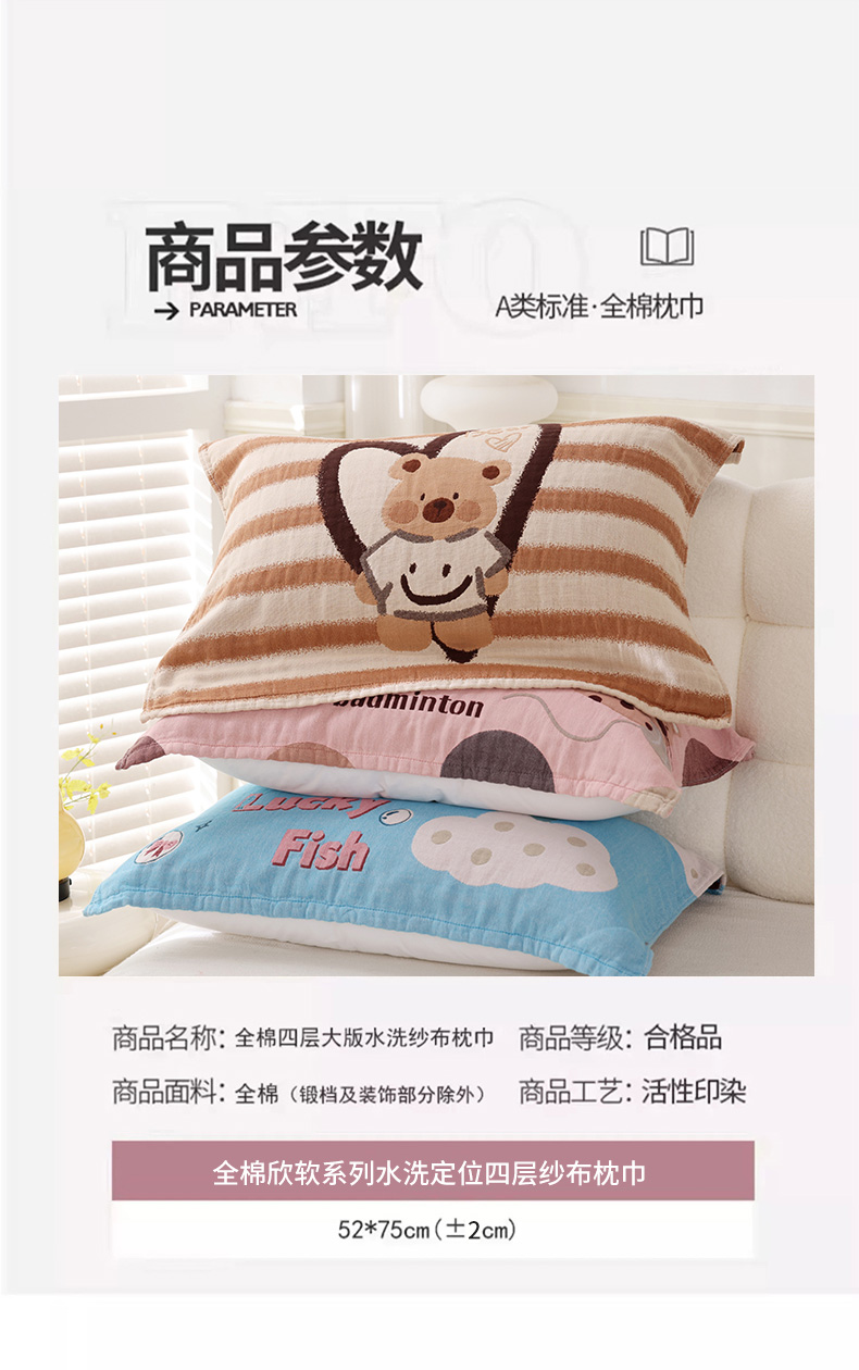 当前位置: 91家纺网 > 商品网购 > 床上用品 > 枕巾垫巾 > 朴尔家纺-毛巾被 2026新款全棉纯棉欣软系列定位四层加厚柔软纱布枕巾 多趣多
