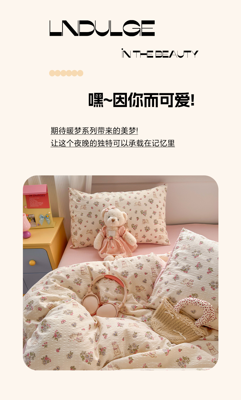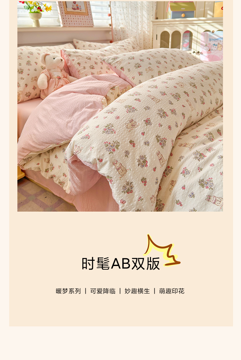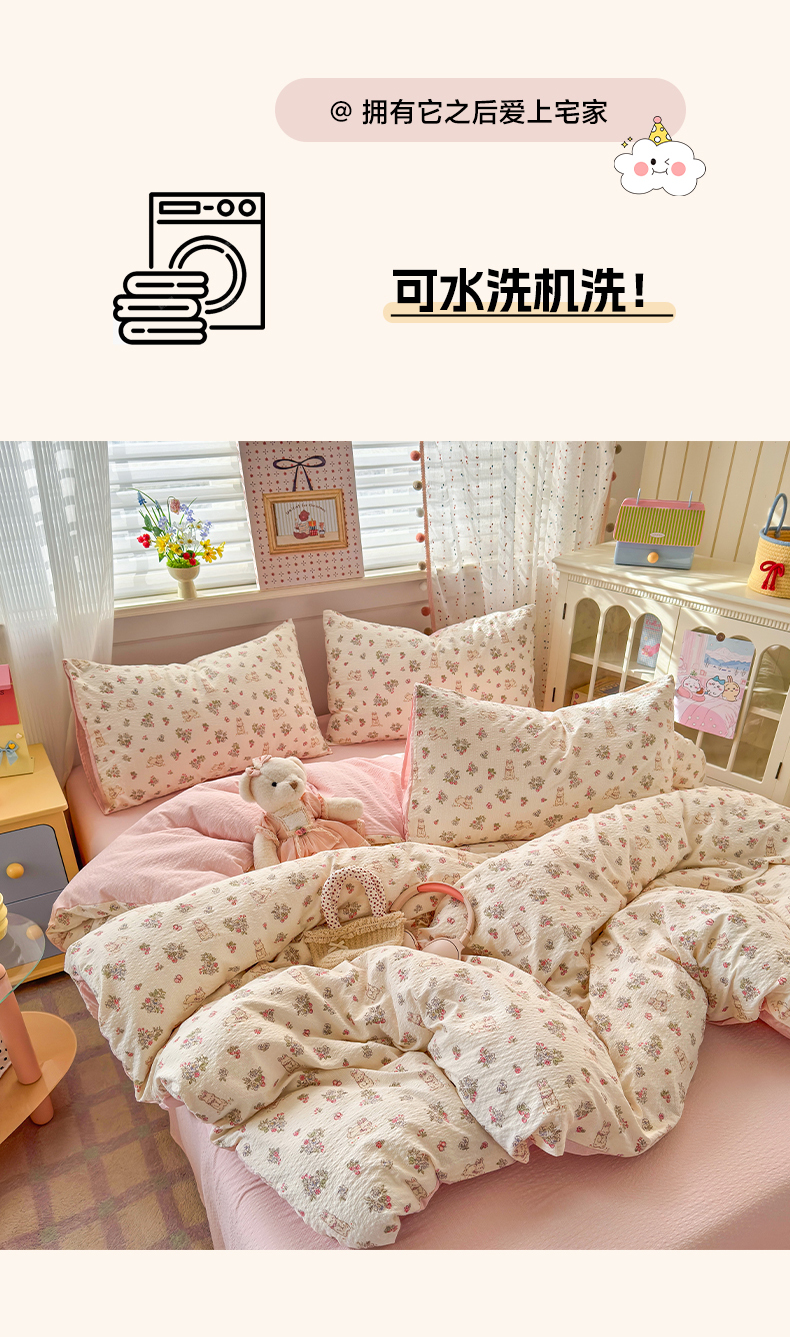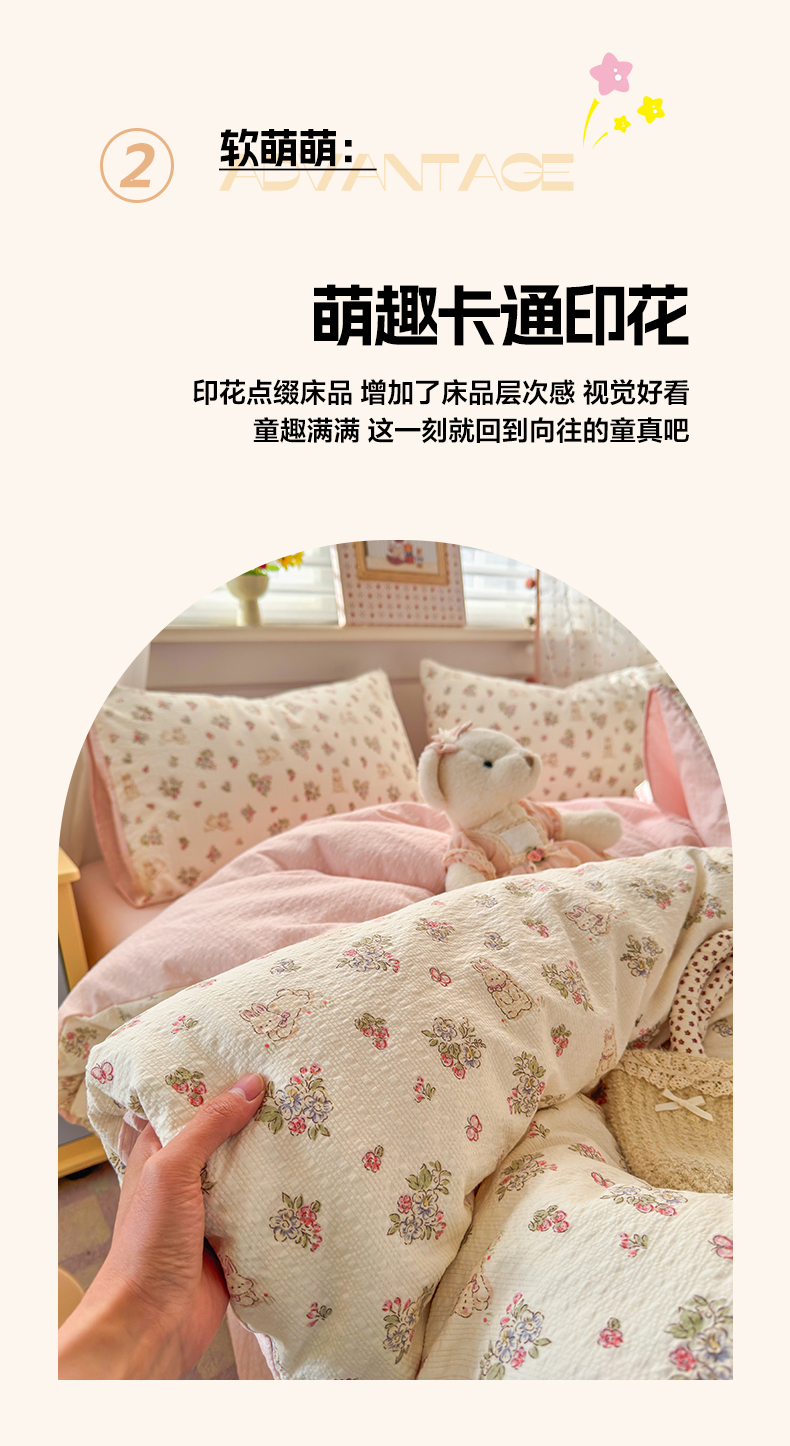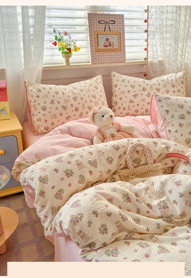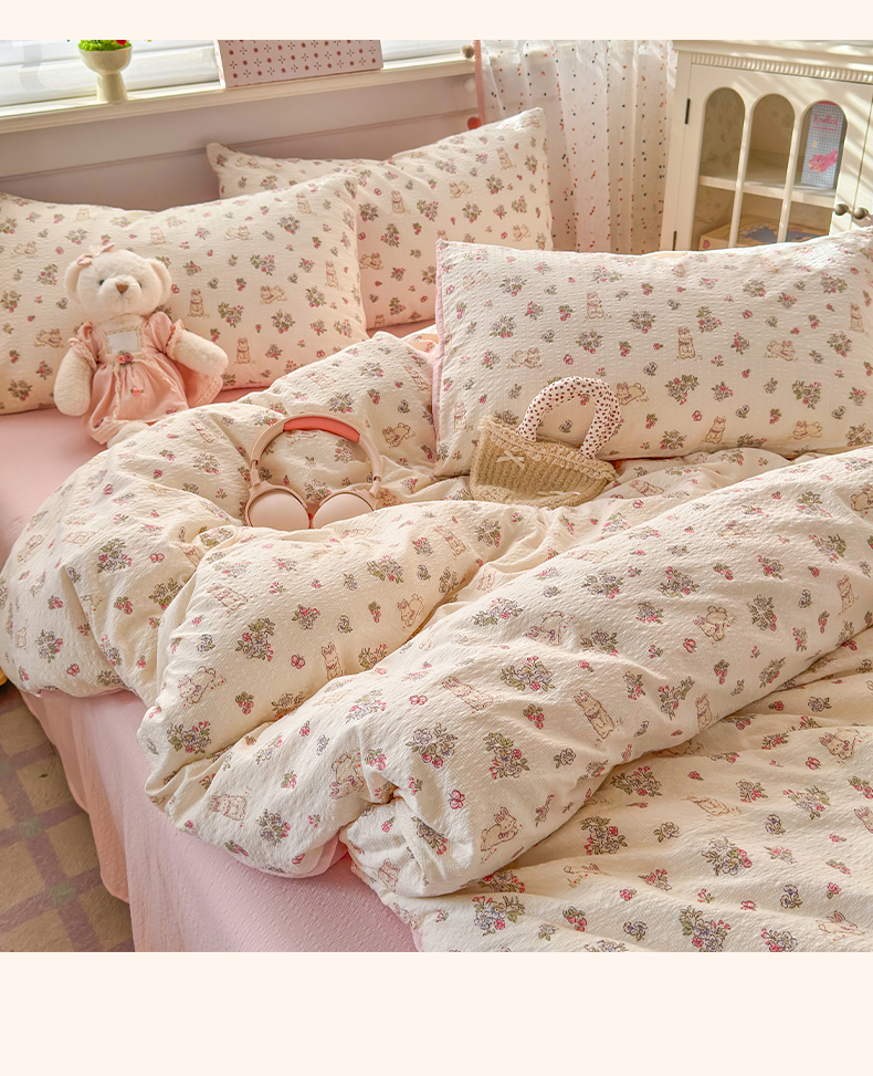 当前位置: 91家纺网 > 商品网购 > 床品套件 > 四件套 > 其它四件套 > 优承佳生活馆 2026年新款卡通小清新风格高克重超柔软糯泡芙双层纱面料三件套四件套单被套系列 花间兔语