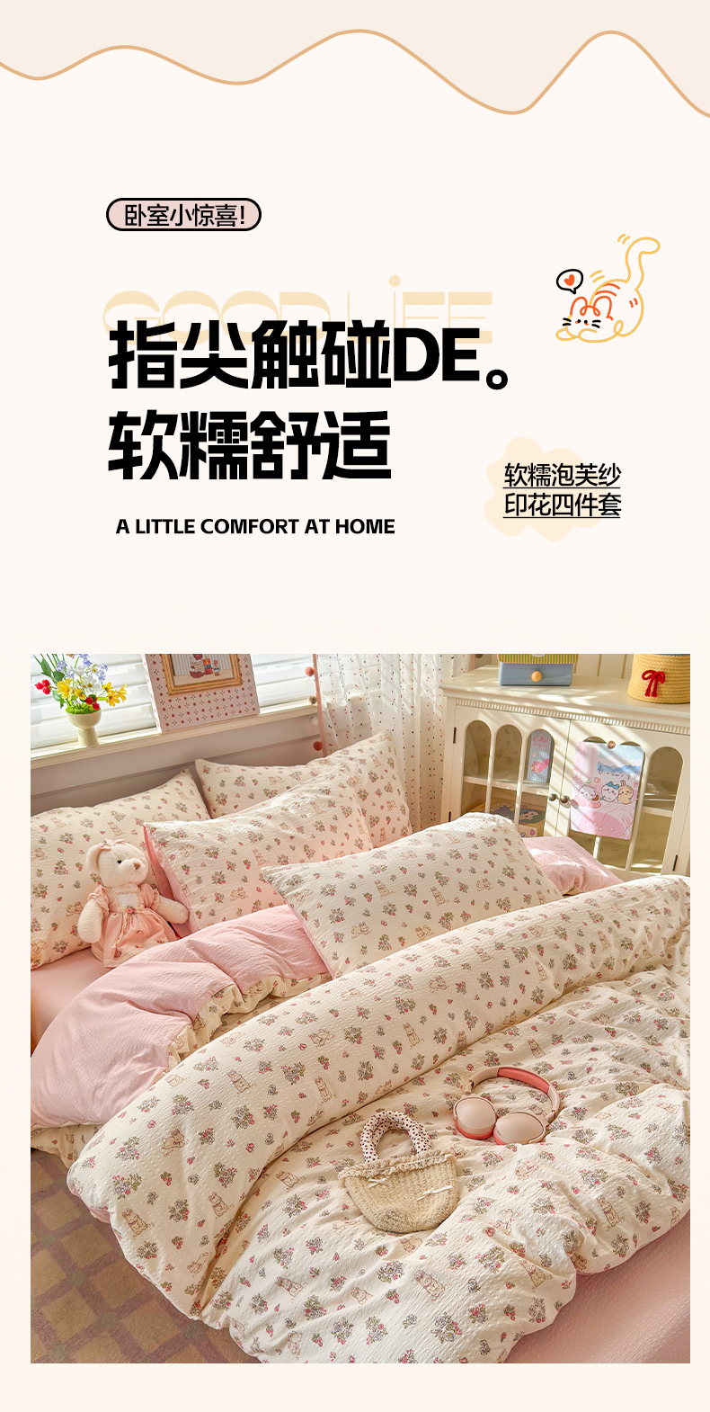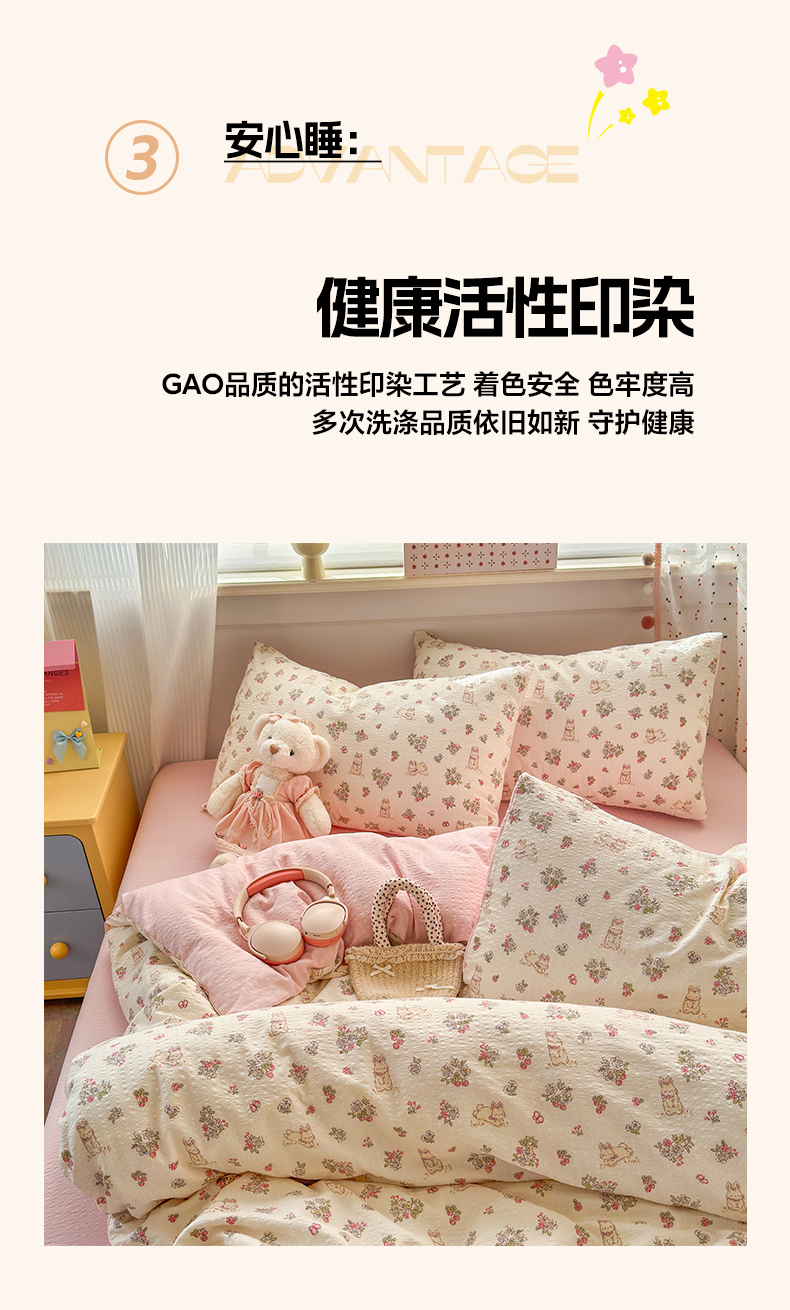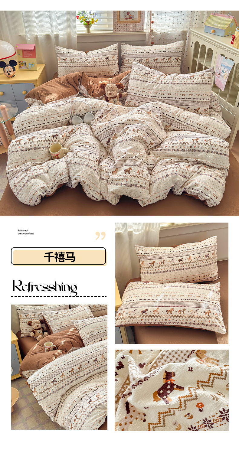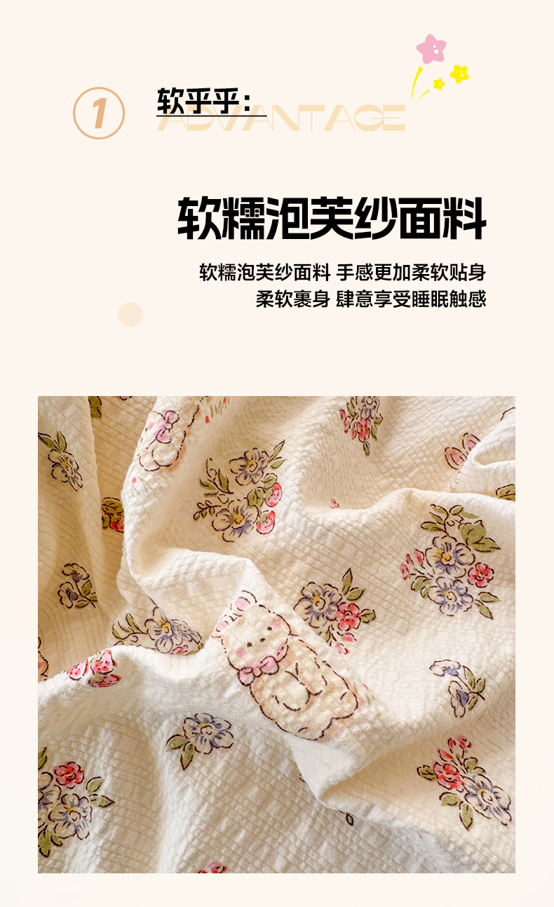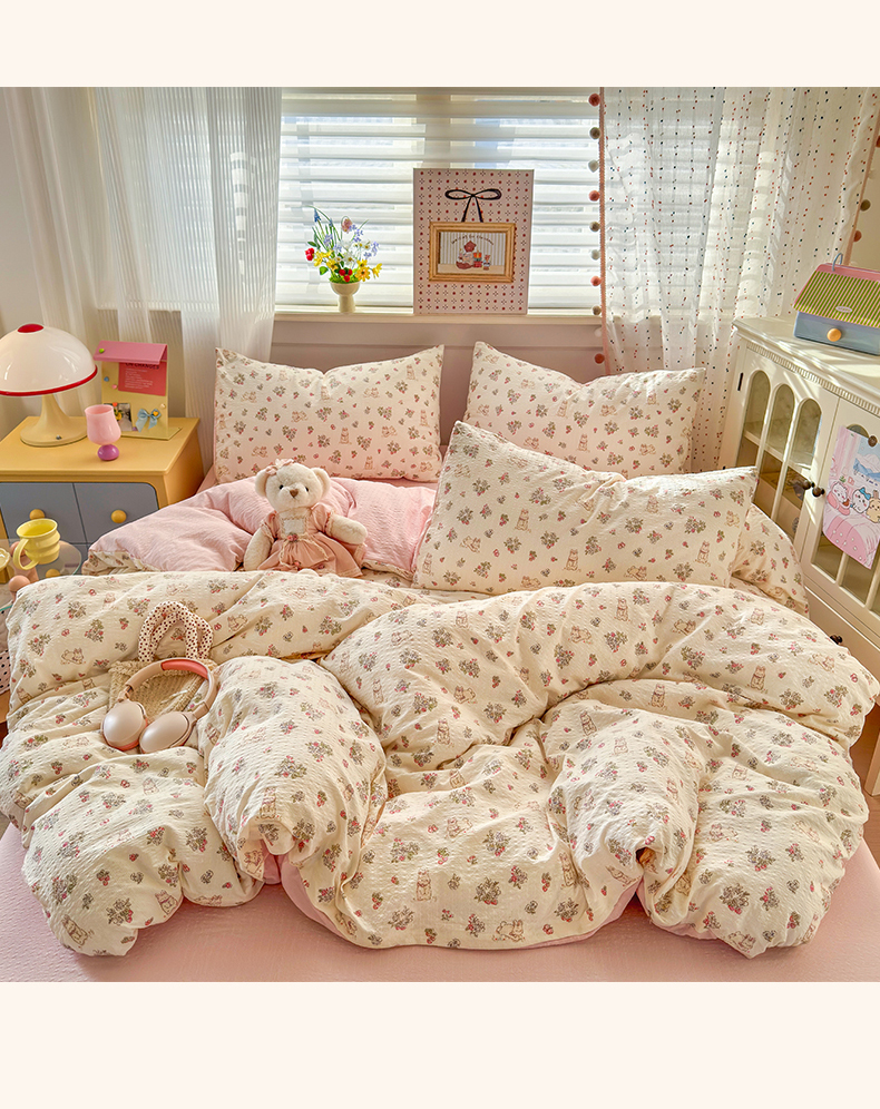 当前位置: 91家纺网 > 商品网购 > 床品套件 > 四件套 > 其它四件套 > 优承佳生活馆 2026年新款卡通小清新风格高克重超柔软糯泡芙双层纱面料三件套四件套单被套系列 花间兔语