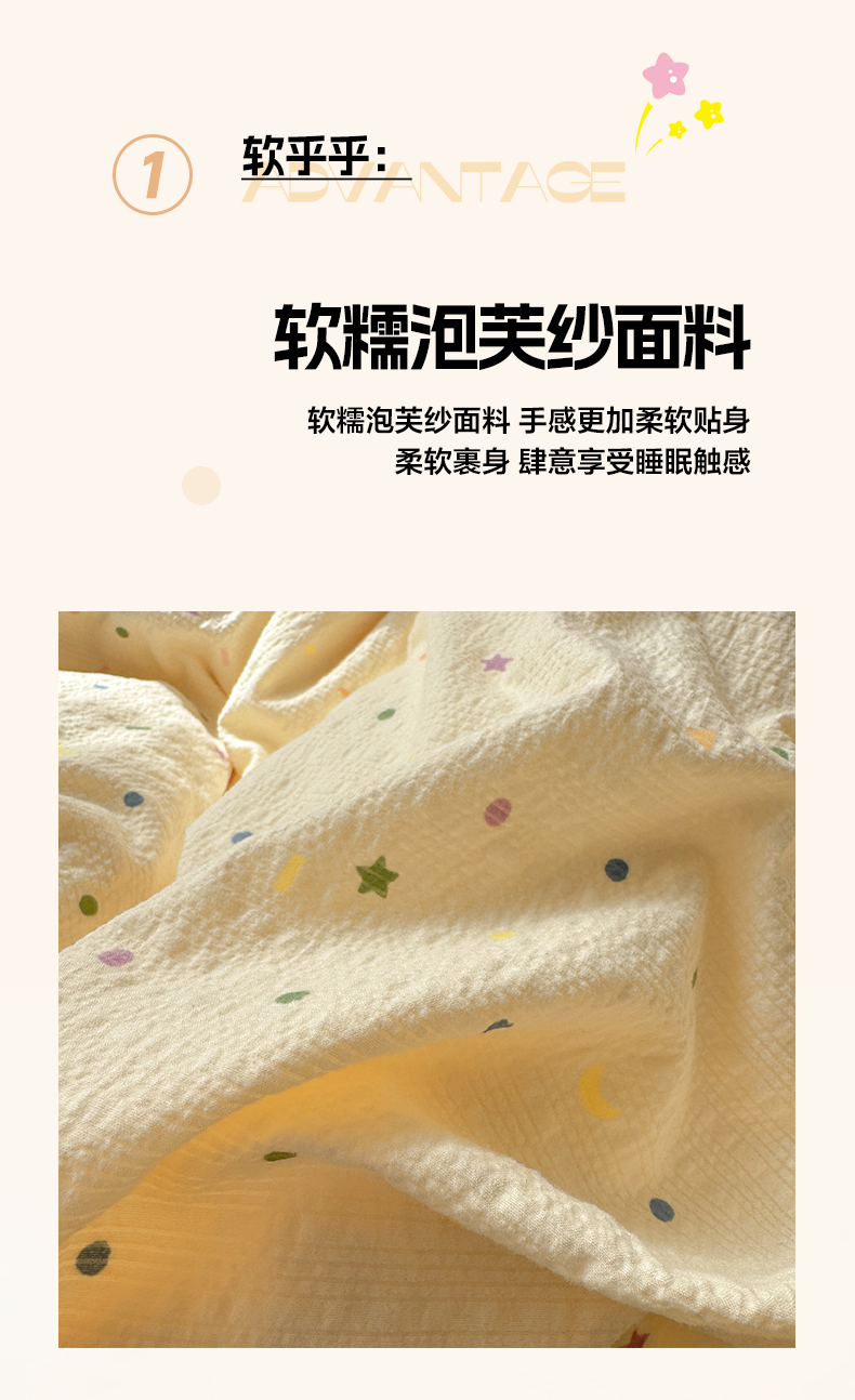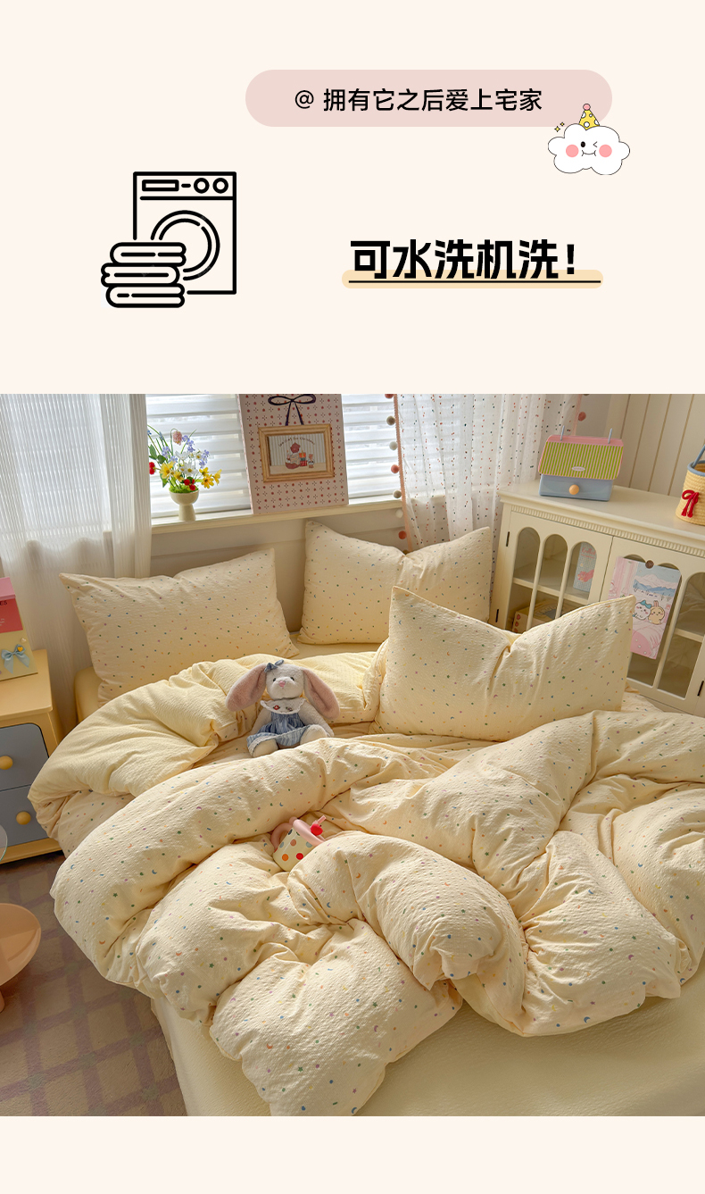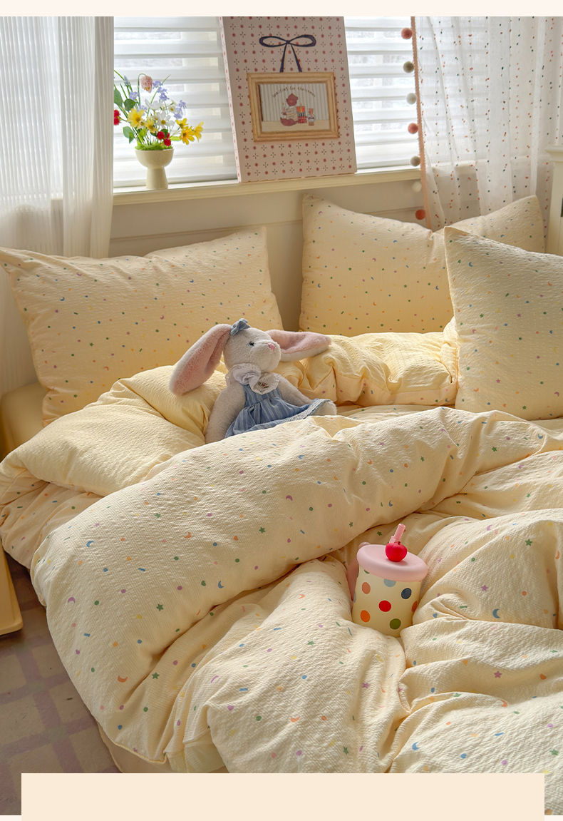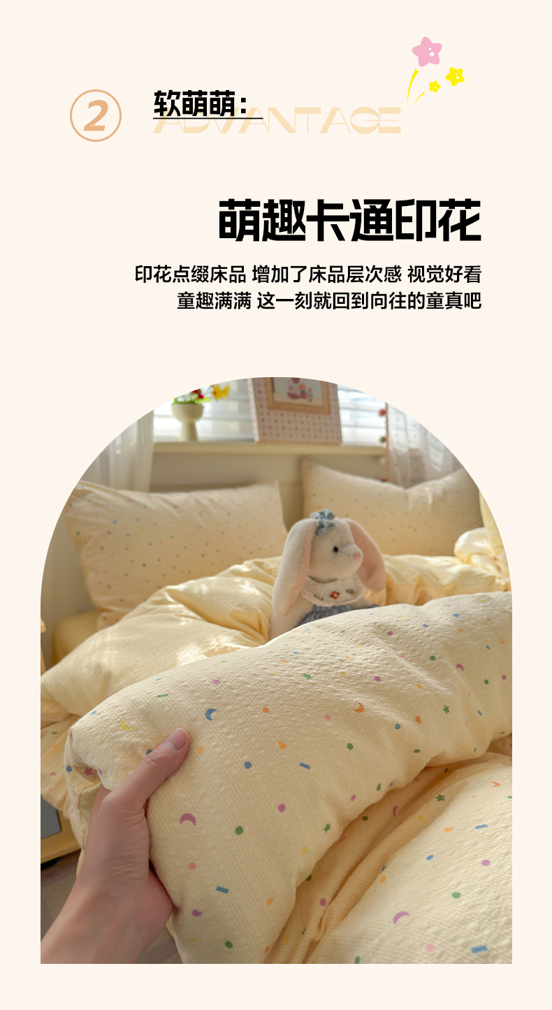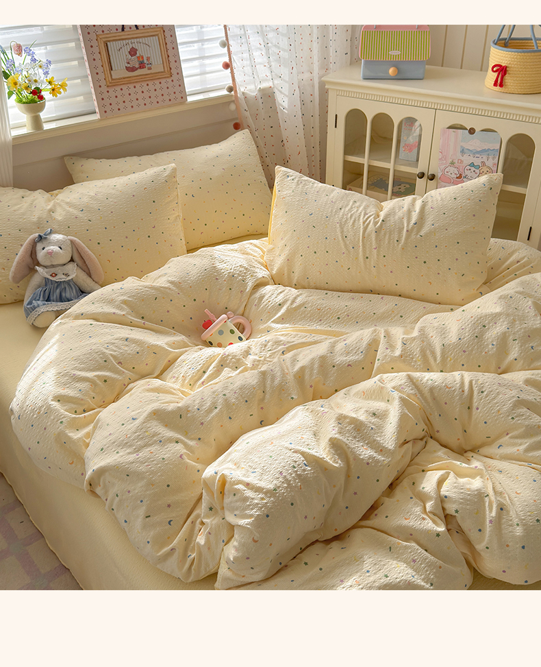 当前位置: 91家纺网 > 商品网购 > 床品套件 > 四件套 > 其它四件套 > 优承佳生活馆 2026年新款卡通小清新风格高克重超柔软糯泡芙双层纱面料三件套四件套单被套系列 童趣星空