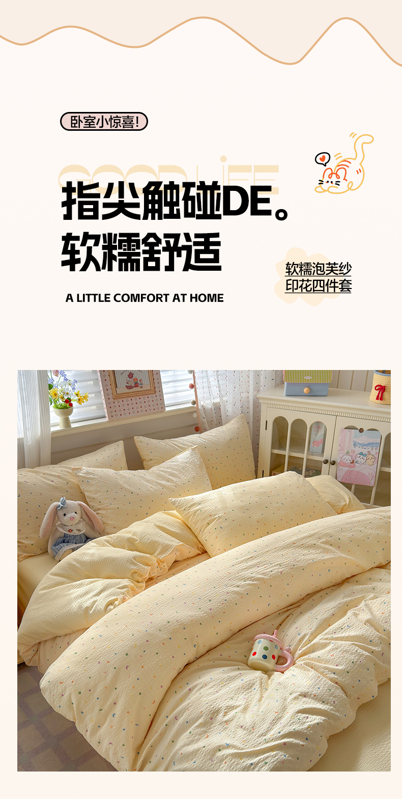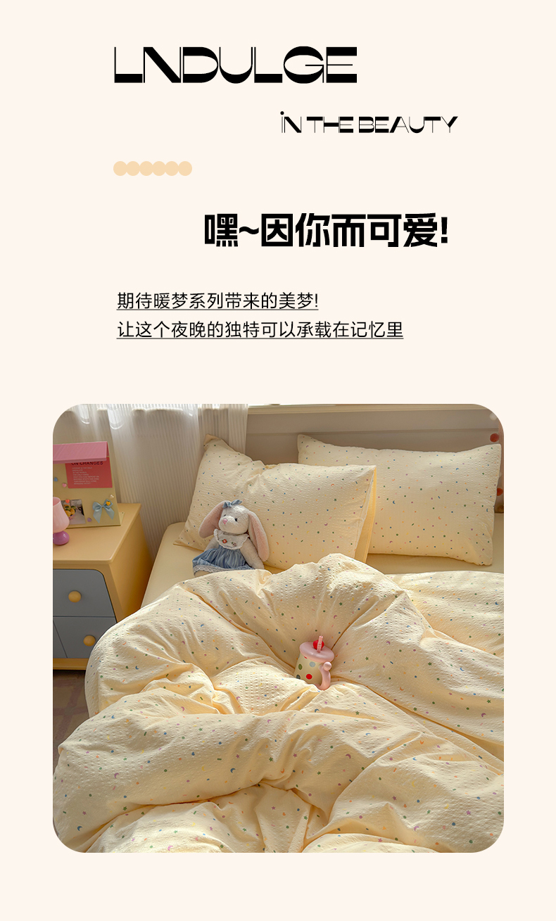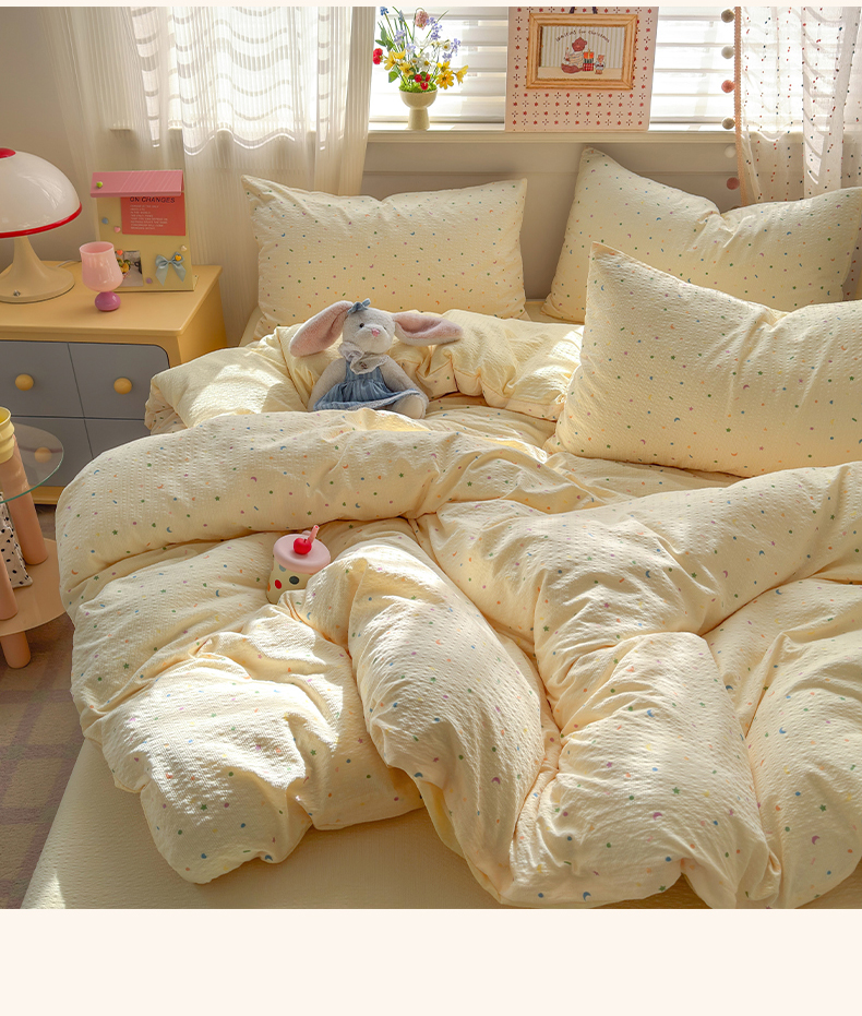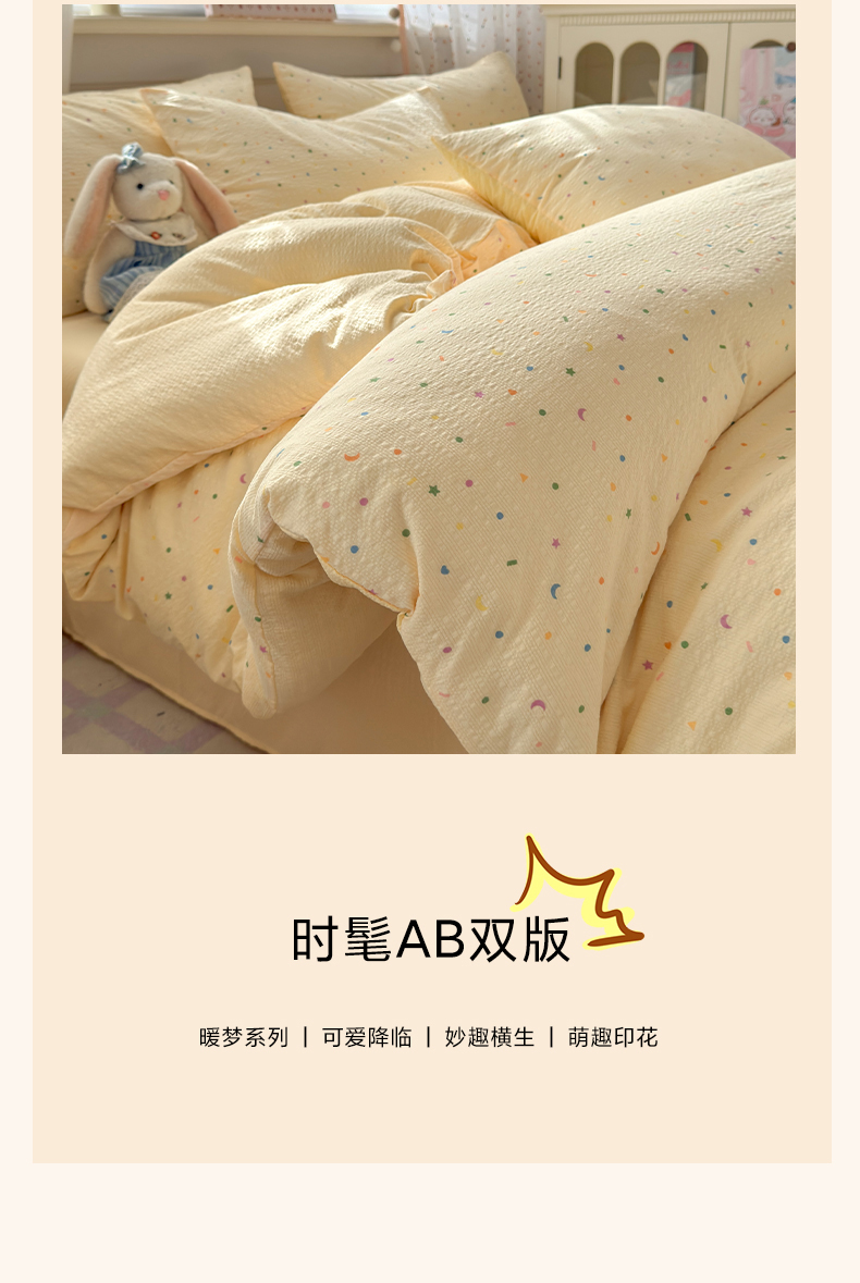 当前位置: 91家纺网 > 商品网购 > 床品套件 > 四件套 > 其它四件套 > 优承佳生活馆 2026年新款卡通小清新风格高克重超柔软糯泡芙双层纱面料三件套四件套单被套系列 童趣星空