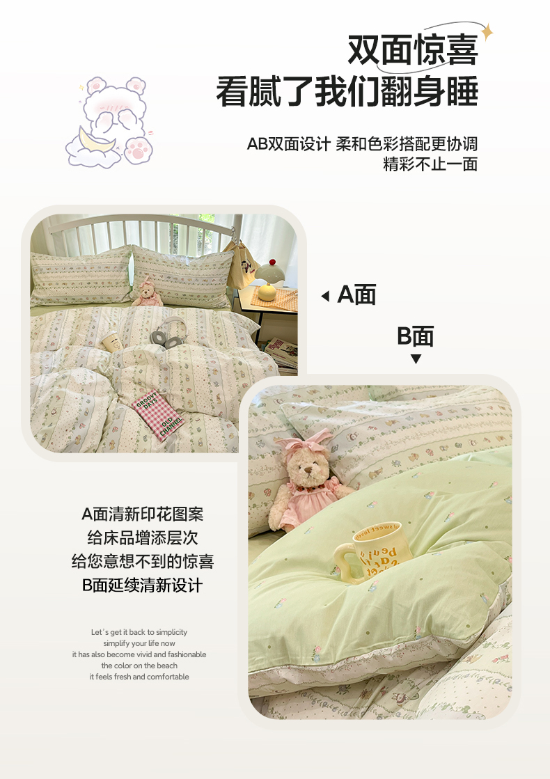 总盛馨家纺 2023新款ins北欧风高支高密全棉喷气小清新纯棉四件套,花丛兔,锦鲤,快乐小狗,梦幻,梦境小兔,入夏,若微,溪沐,叶墨新晨,樱桃兔,星球家园,草莓兔,花粉兔,花花小熊,花开富贵,花蓝兔,花胥梦粉,花韵,狂想曲蓝,萌宠乐园,蜜桃公主,莫奈花园蓝,奇妙幻想蓝,曲奇小熊,圣歌娜,诗情画意,桃桃兔,甜蜜小花,文特森 咖,小黄鸭,叶叶小花,油画草莓,丛林家园,粉色花海,可可大草莓,浪漫花朵,满庭花开,漫时光,暖阳紫,郁金香小兔