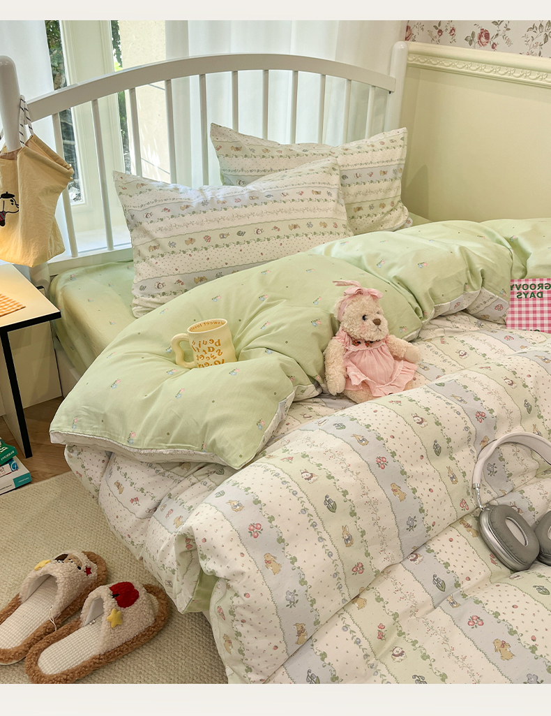 盛馨家纺 2026年开学季春夏新品小清新全棉学生三件套四件套床笠四件套跑量款 眠眠兔岛