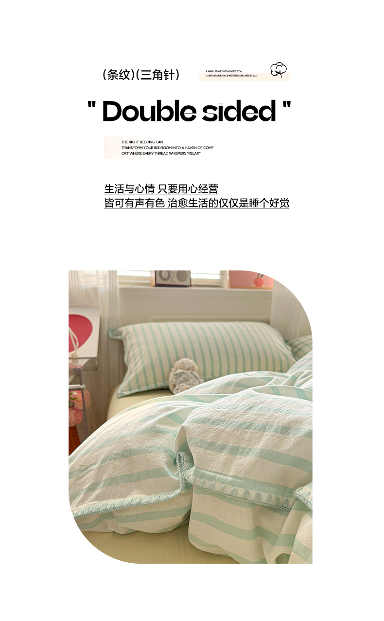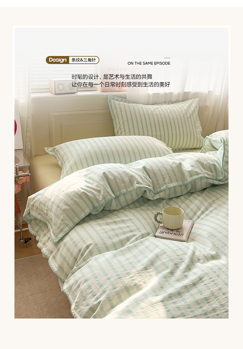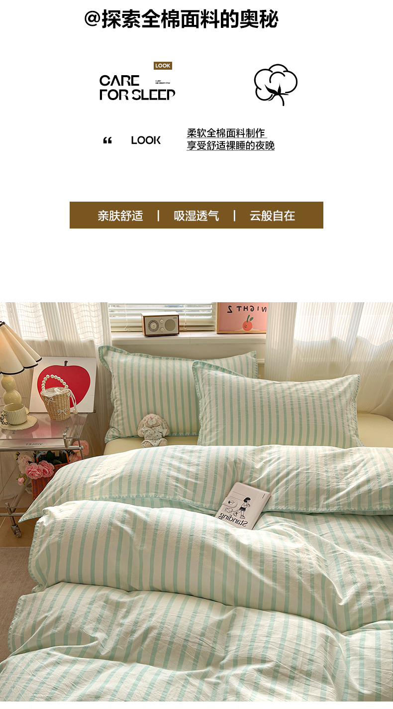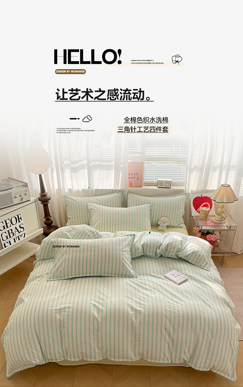 当前位置: 91家纺网 > 商品网购 > 床品套件 > 四件套 > 全棉普通四件套 > 如一 2026春夏新款色织全棉纯棉加密水洗棉条纹三角针四件套 野原绿