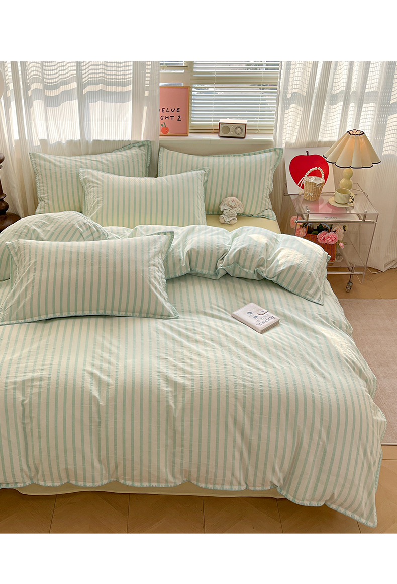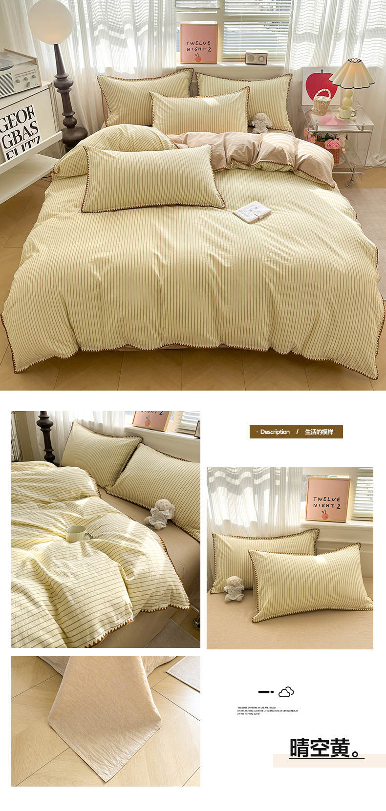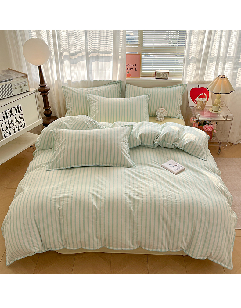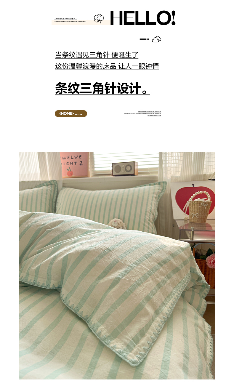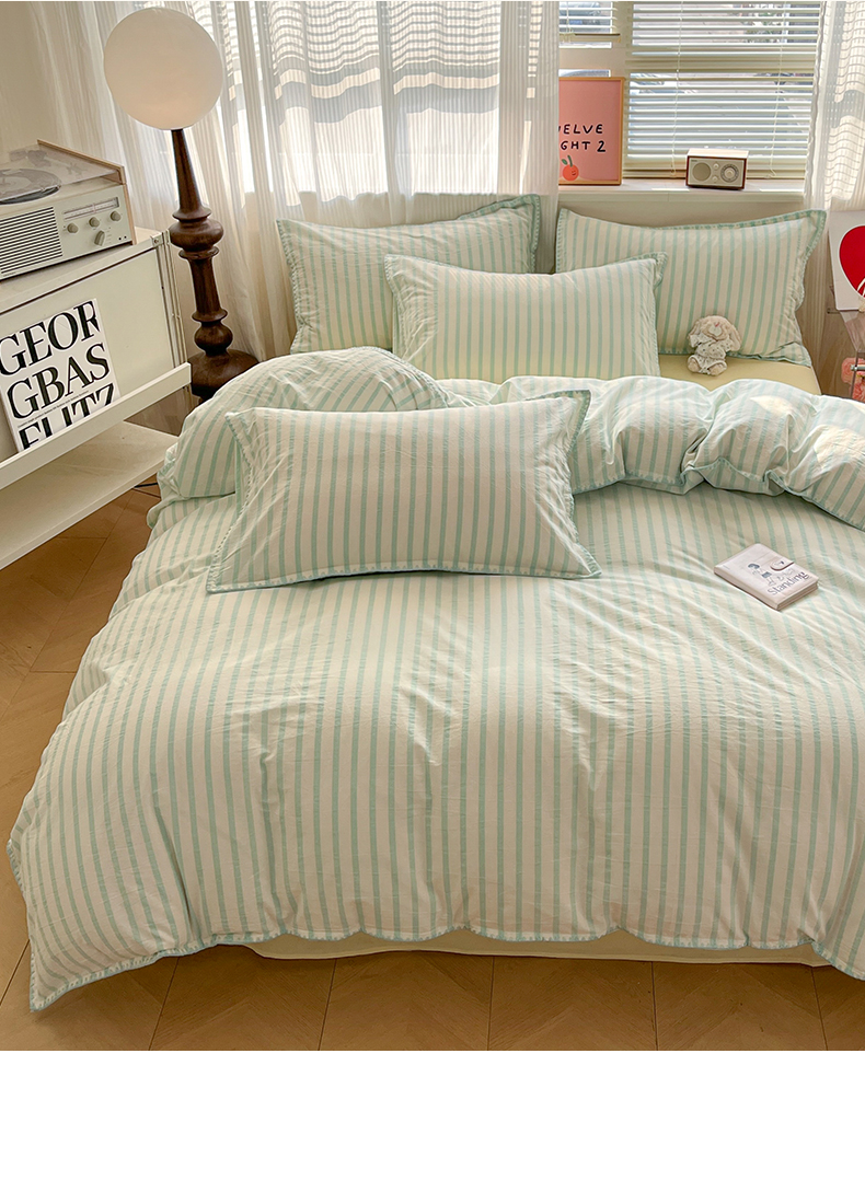 当前位置: 91家纺网 > 商品网购 > 床品套件 > 四件套 > 全棉普通四件套 > 如一 2026春夏新款色织全棉纯棉加密水洗棉条纹三角针四件套 野原绿