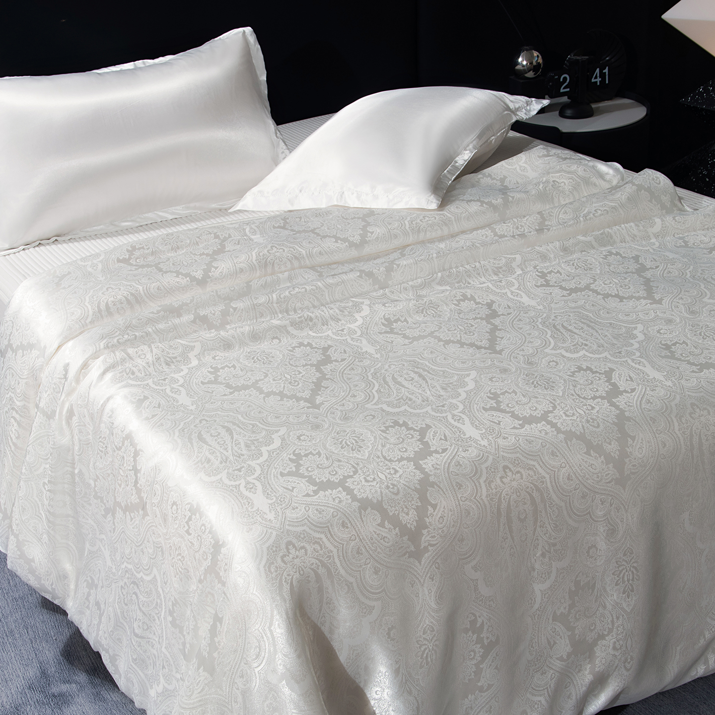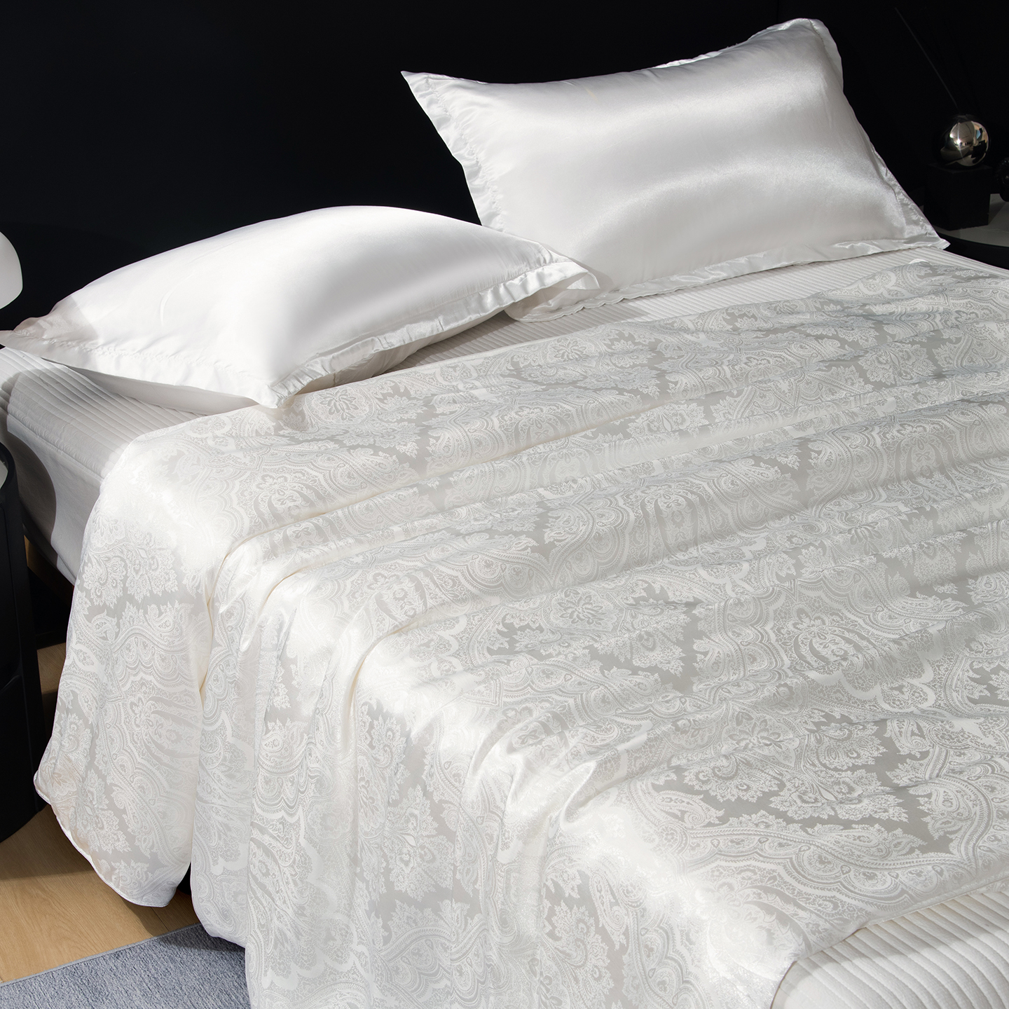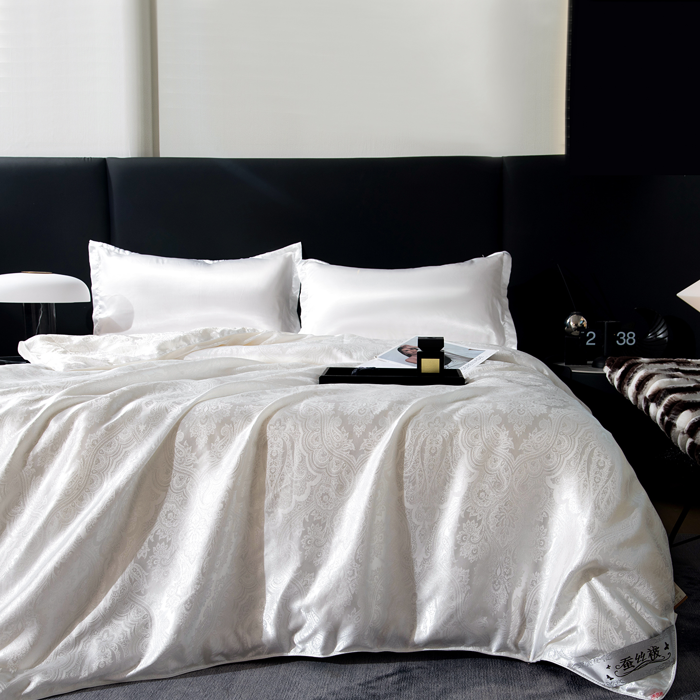 (总)鑫田家纺 2025年新款提花蚕丝被100%桑蚕丝短丝被春秋被双人子母被二合一冬被礼品被夏凉被,欧若拉-白,欧若拉-灰,欧若拉-玉