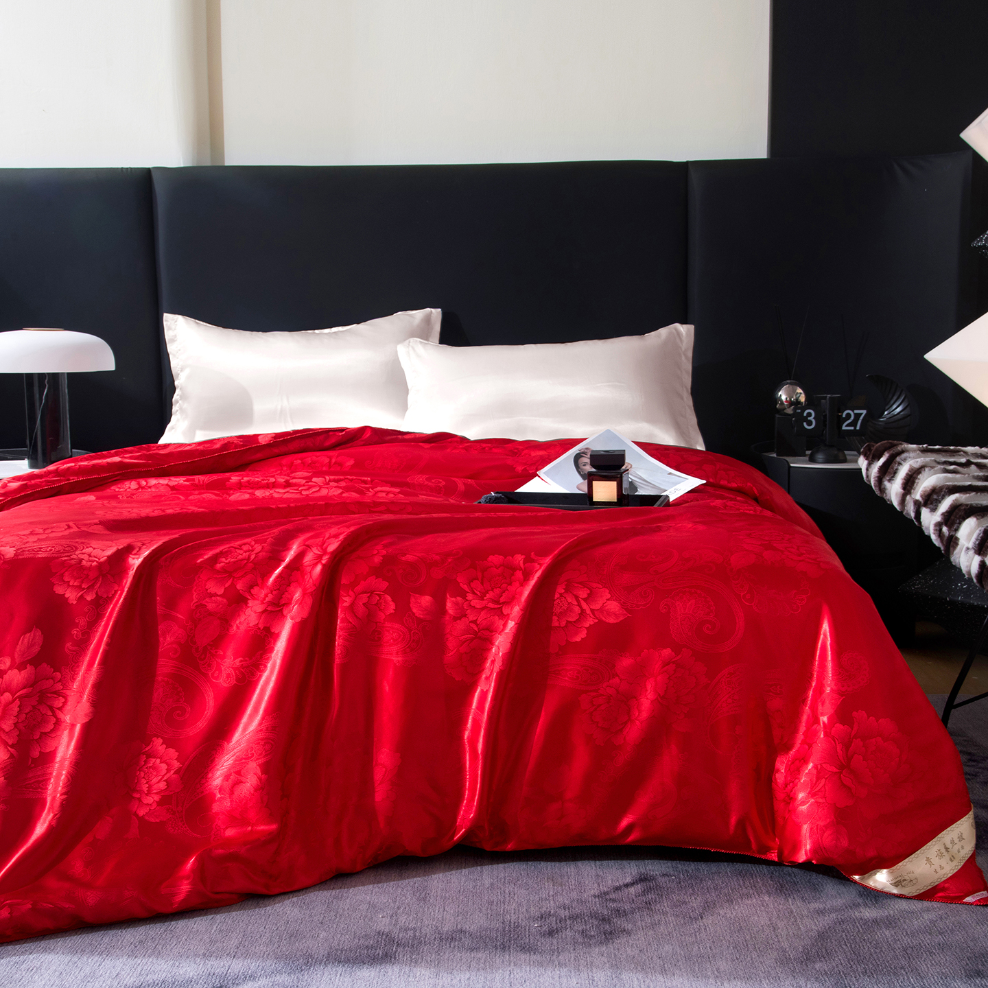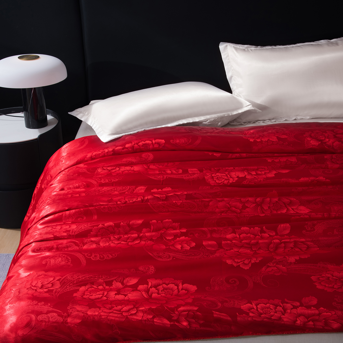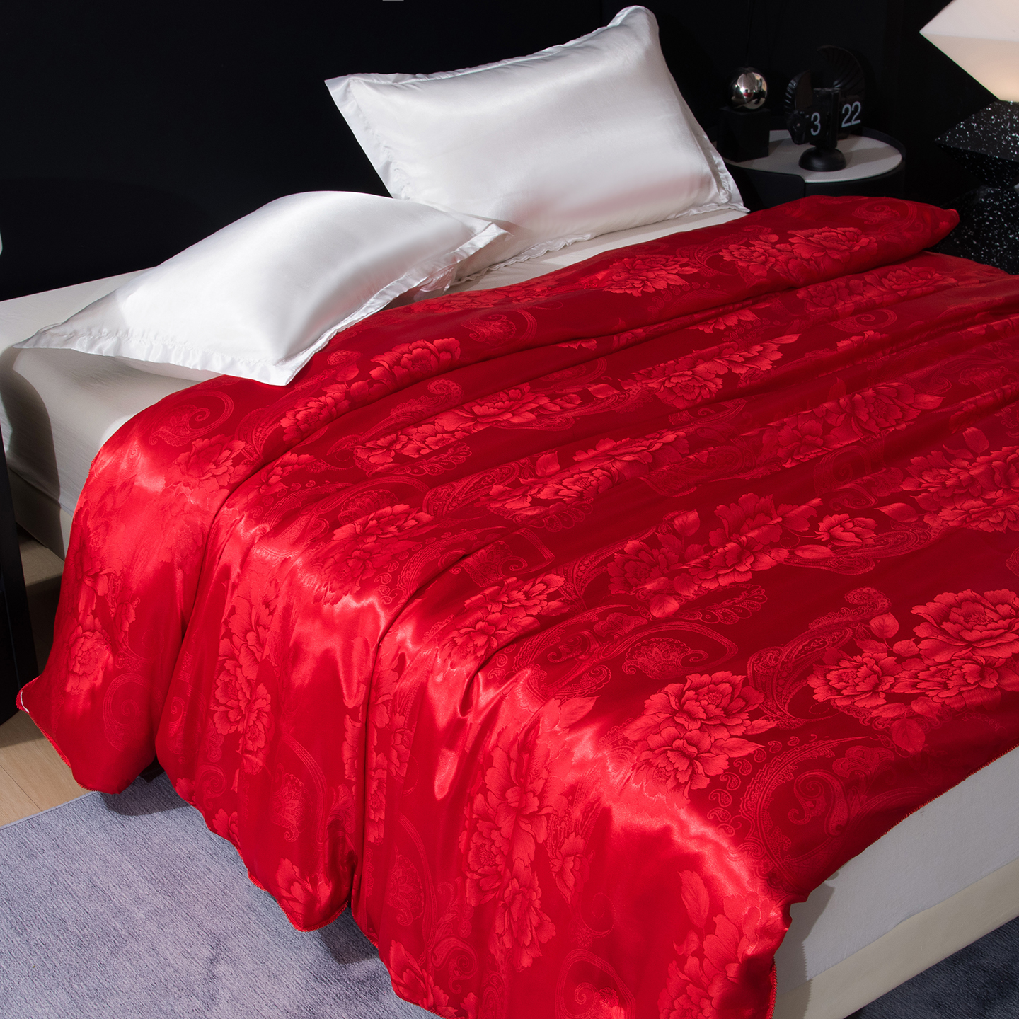 被子 > 蚕丝被 > 鑫田家纺 2026新款100%蚕丝被柞蚕丝夏凉被牡丹花大提花春秋被冬被子母被礼品被夏被桑蚕丝被 牡丹花-红色