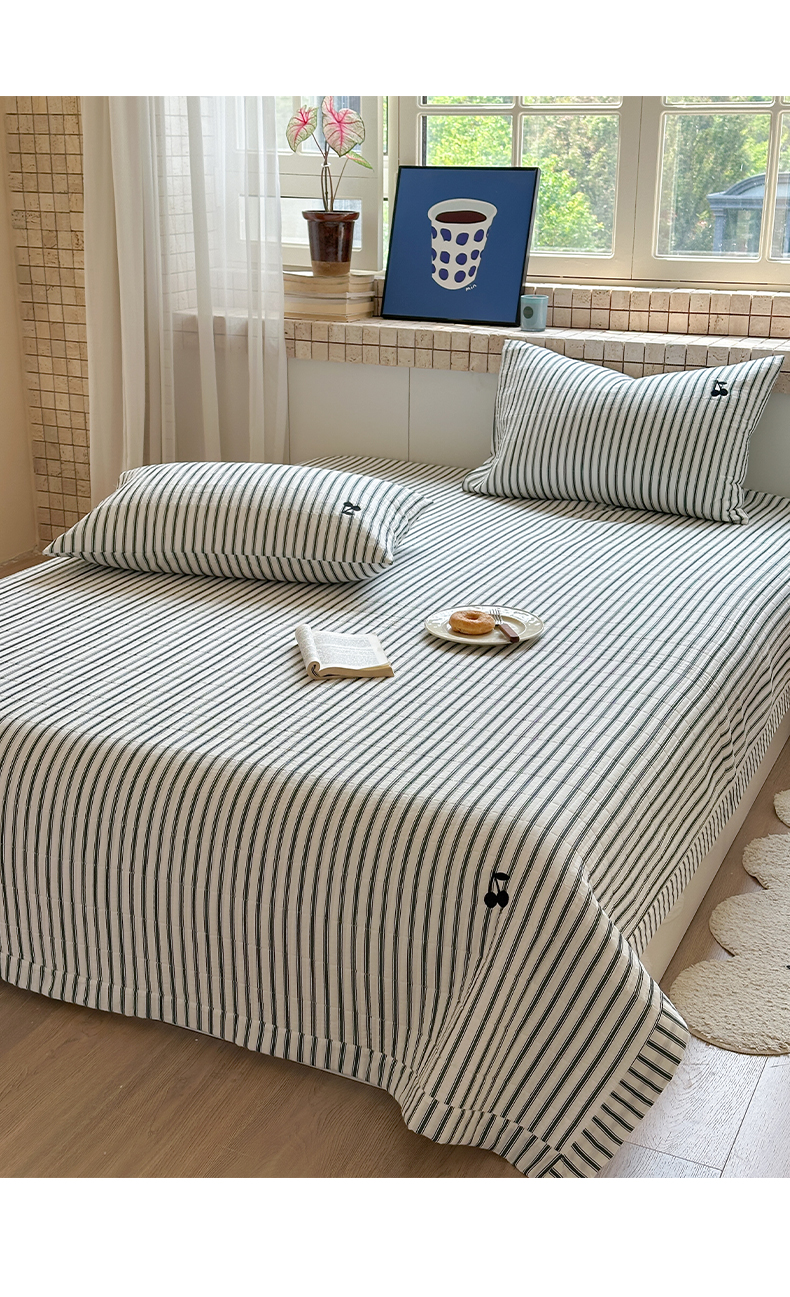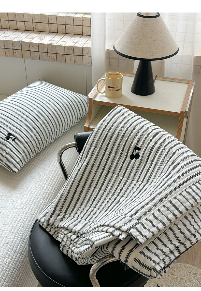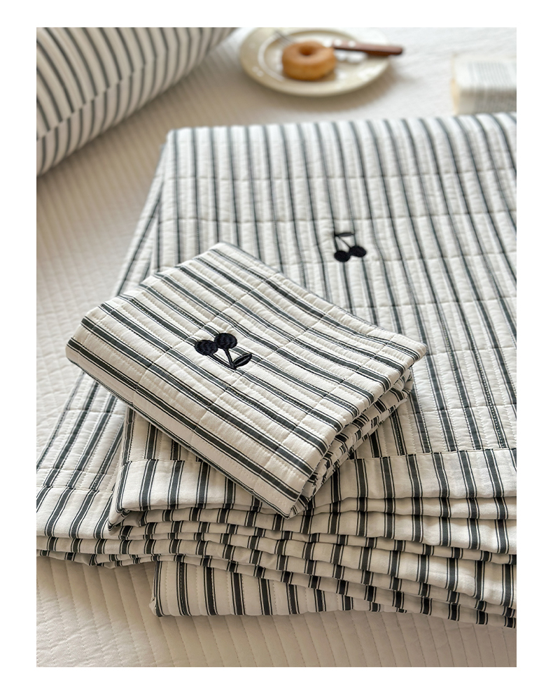 琳可家居 2026春夏新品双面斜纹全棉印花绣花床盖可机洗加密绗缝高温水洗 条纹樱桃