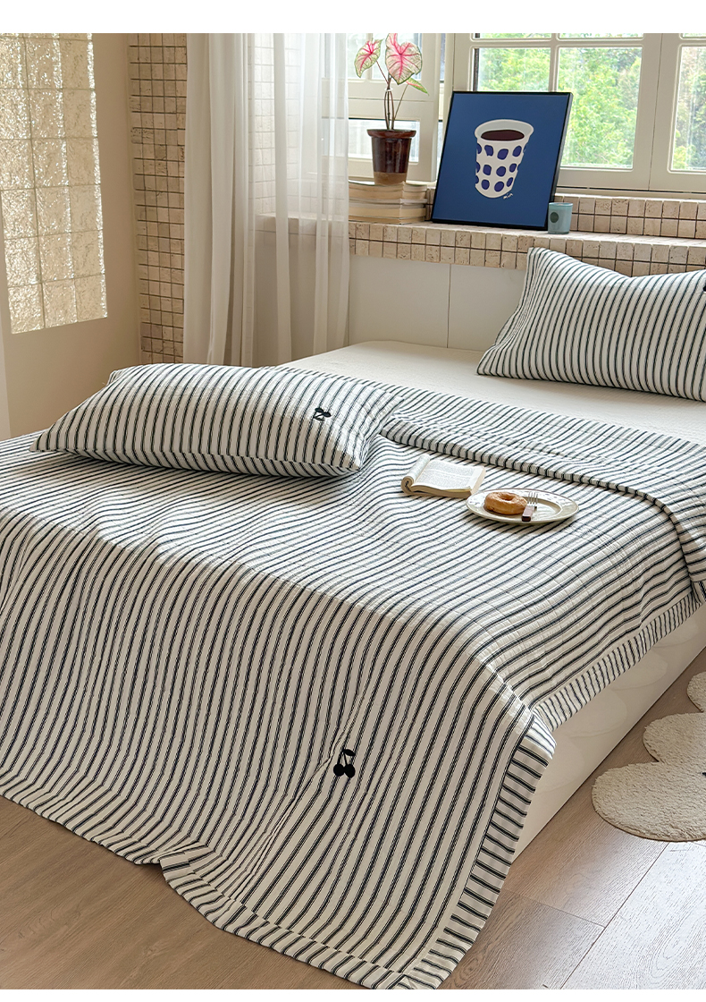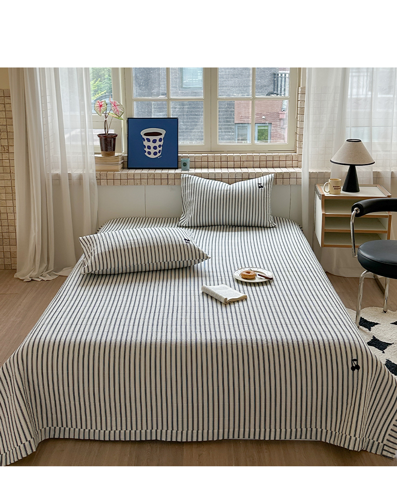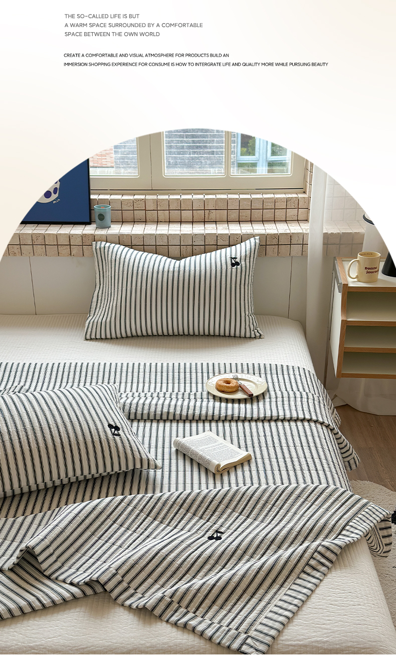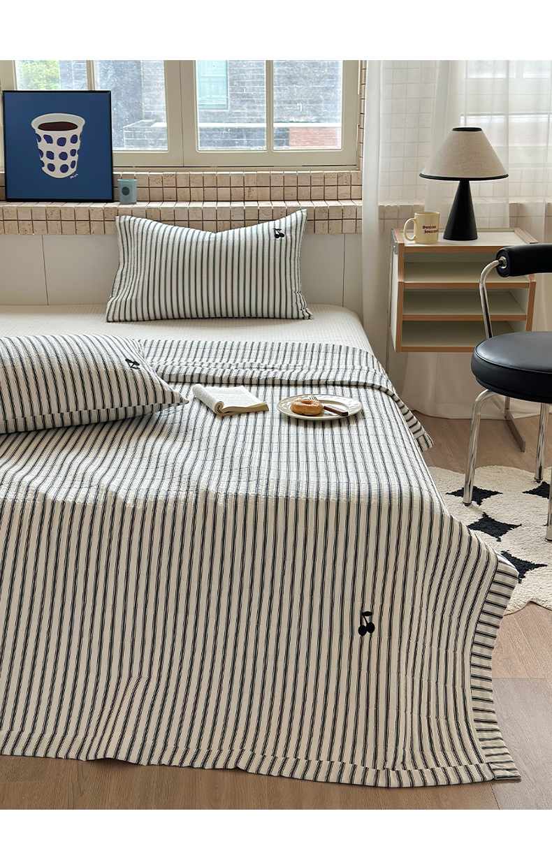 琳可家居 2026春夏新品双面斜纹全棉印花绣花床盖可机洗加密绗缝高温水洗 条纹樱桃