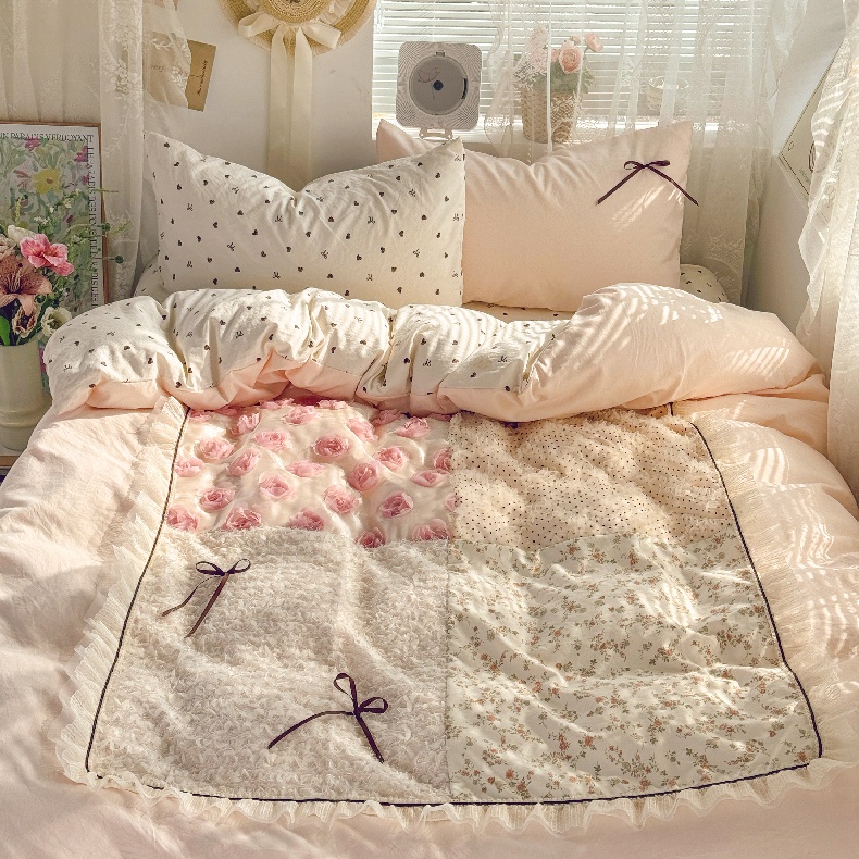 当前位置: 91家纺网 > 商品网购 > 床品套件 > 四件套 > 水洗棉四件套 > 庭笙 2026新款可爱少女心玫瑰花碎花拼接棉感四件套-花漫里 花漫里-蓝