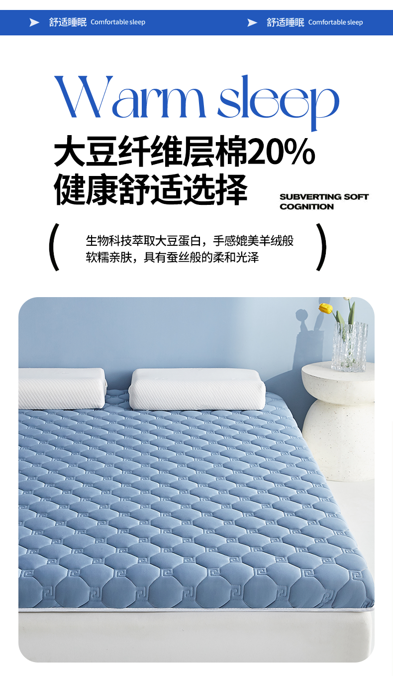 当前位置: 91家纺网 > 商品网购 > 床垫/床褥 > 普通床垫 > 月茶家纺 2026新款大豆纤维单边回字格床垫 回格蓝