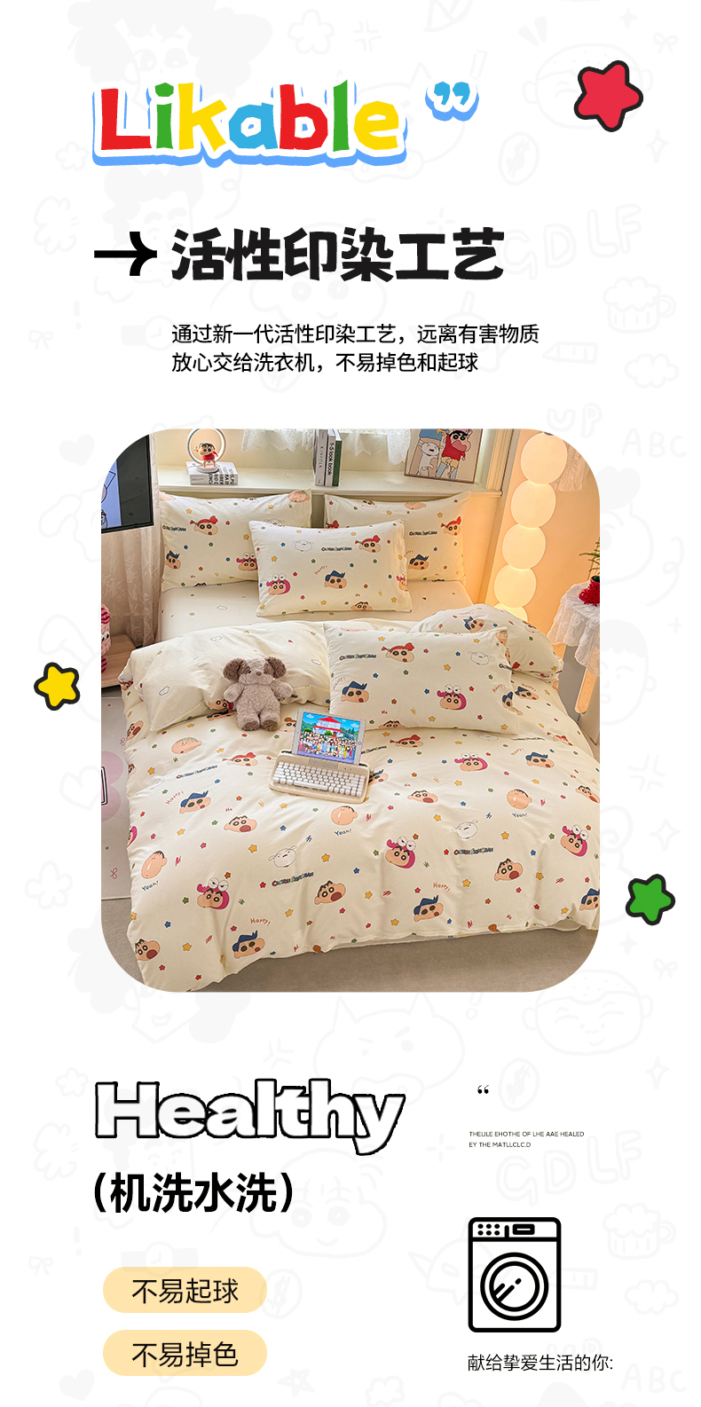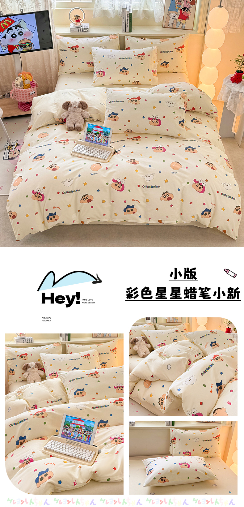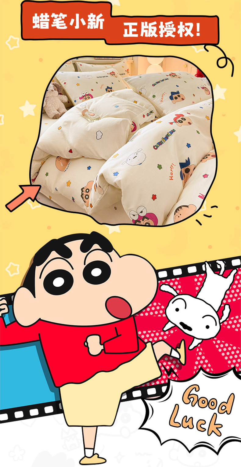 当前位置: 91家纺网 > 商品网购 > 床品套件 > 四件套 > 全棉普通四件套 > 博雅 2026新款蜡笔小新纯棉全棉四件套 小版-彩色星星蜡笔小新