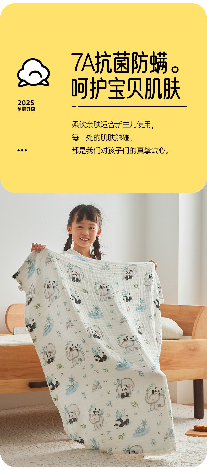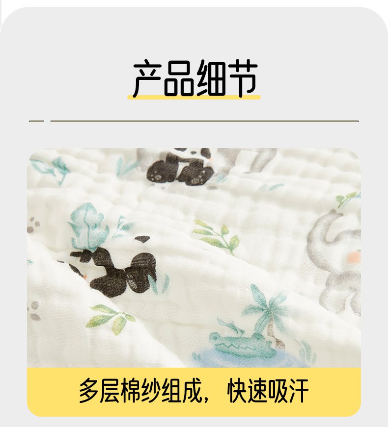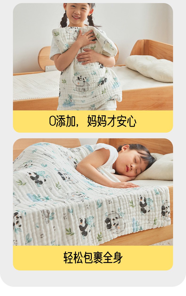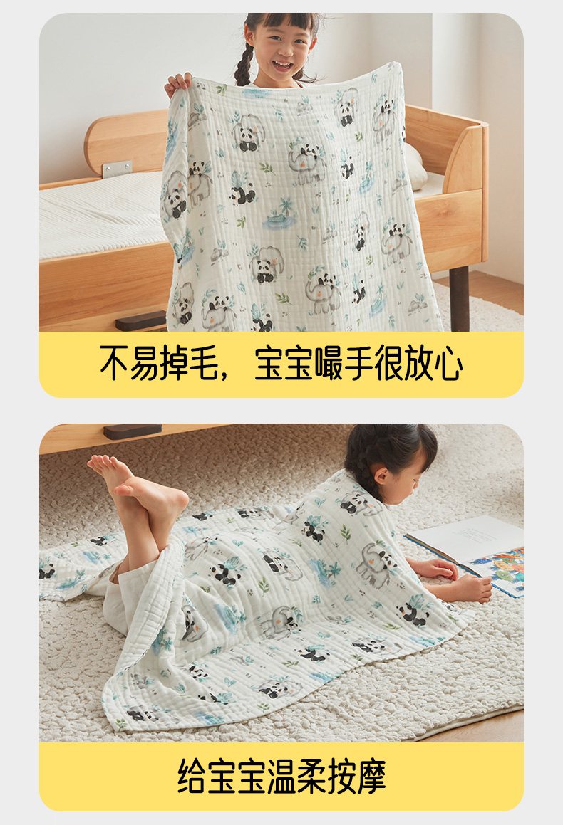商品名称:嗨生活 2026新款A类婴幼儿童夏凉空调被子浴巾六层纱布毛巾被纯棉办公室幼儿园午睡盖毯子 竹林熊猫