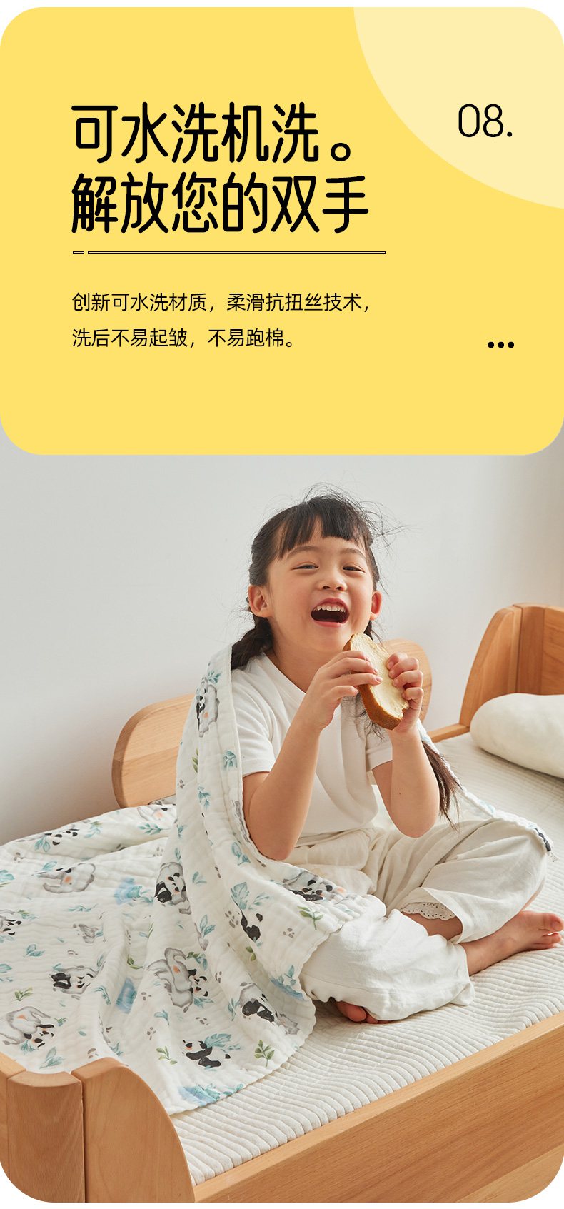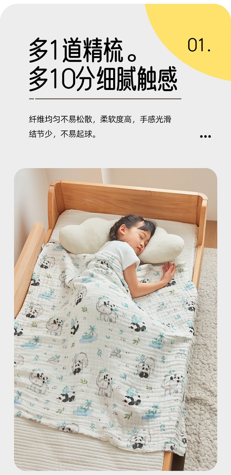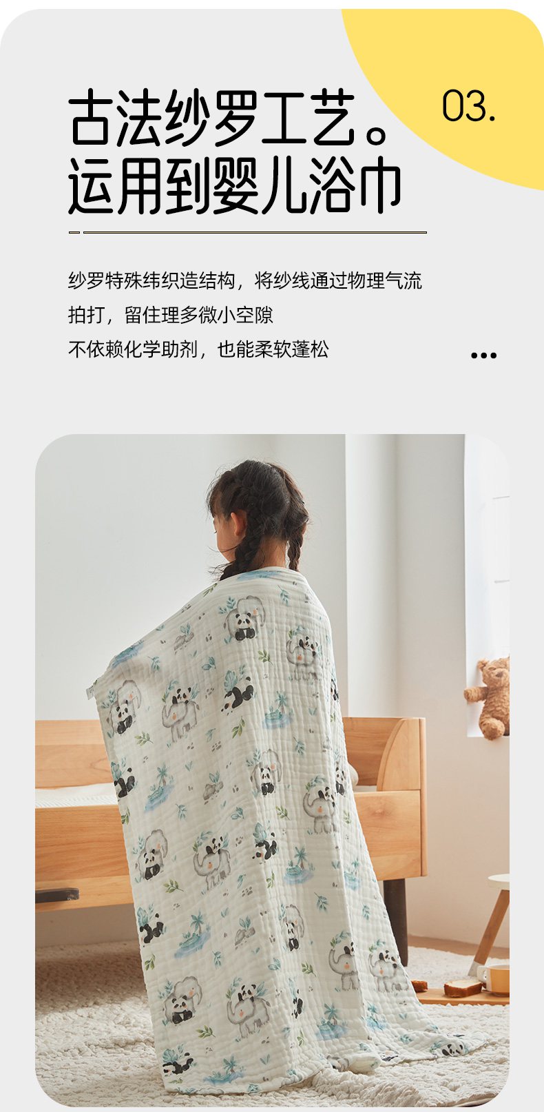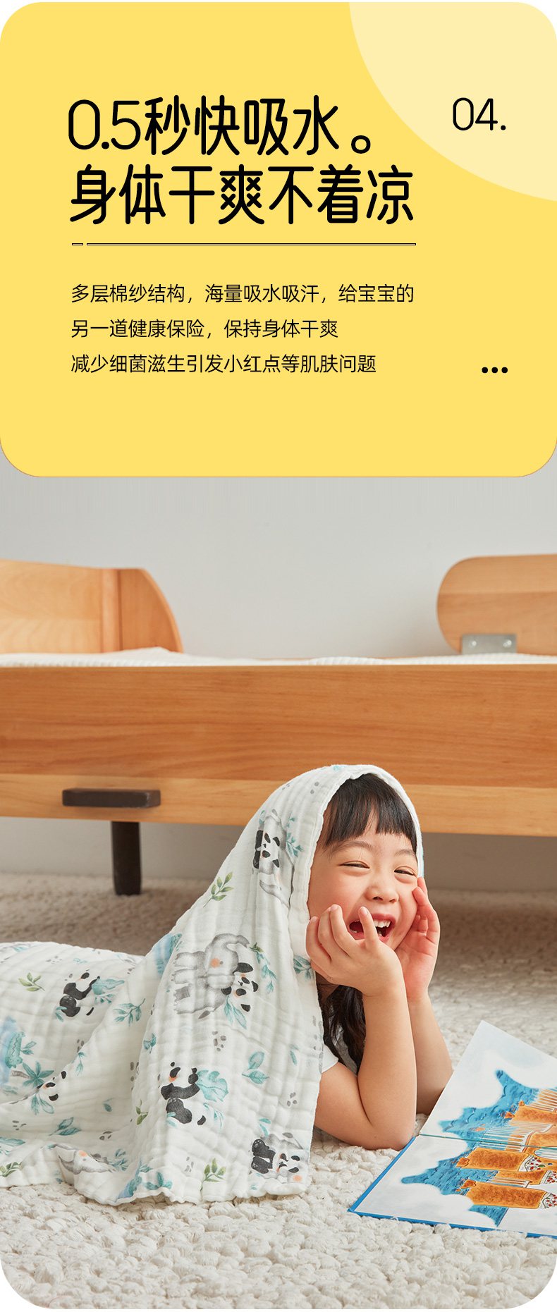 商品名称:嗨生活 2026新款A类婴幼儿童夏凉空调被子浴巾六层纱布毛巾被纯棉办公室幼儿园午睡盖毯子 竹林熊猫