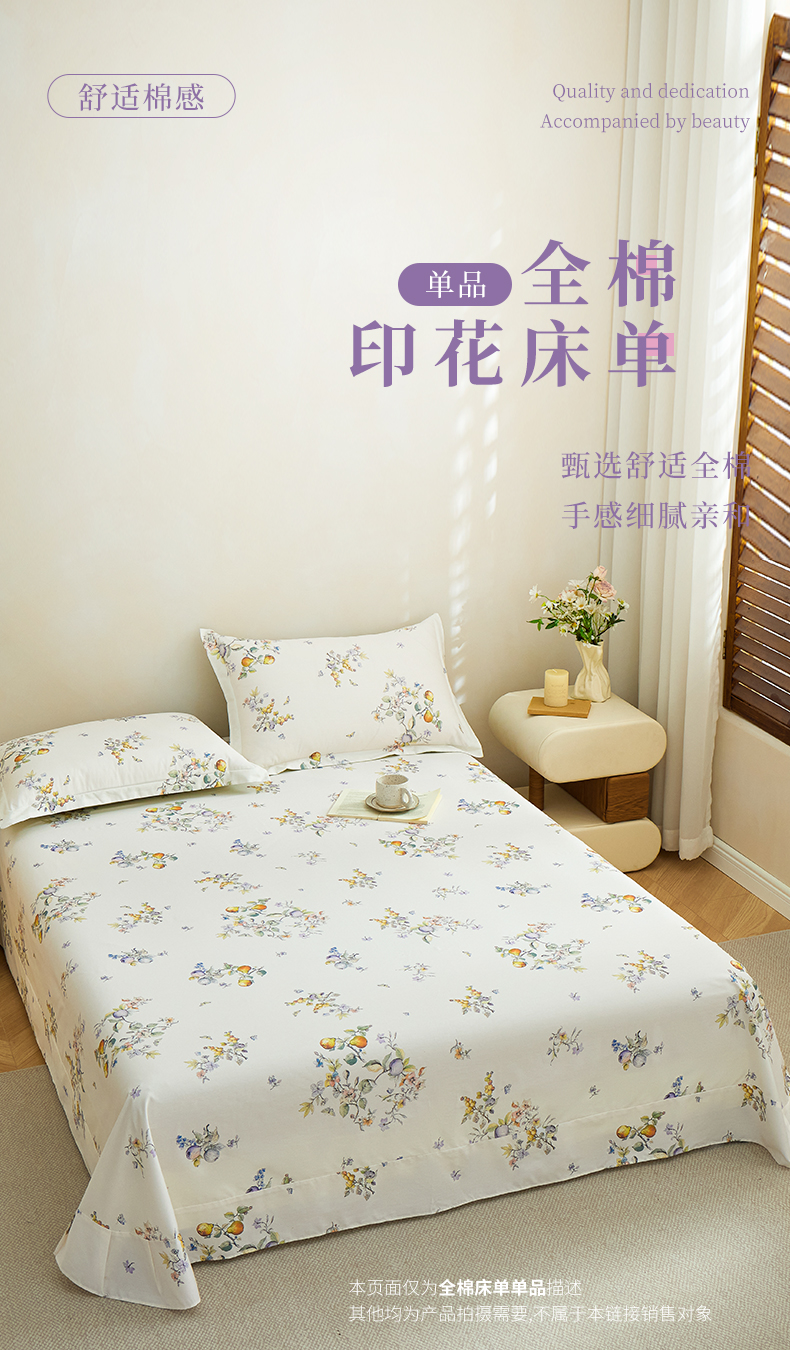 当前位置: 91家纺网 > 商品网购 > 床上用品 > 床单 > 元元家居(元元被业) 2026新款全棉13372套件及单品【印花款】-单床单 知夏