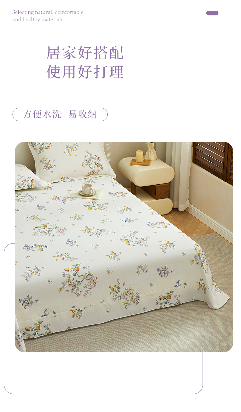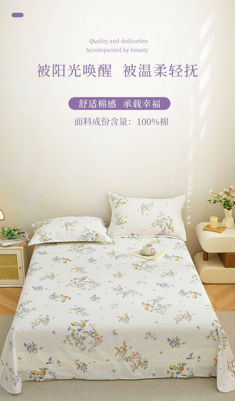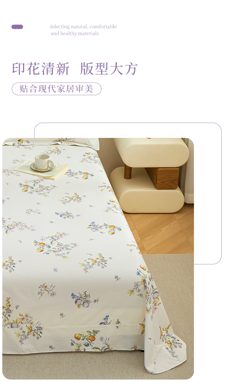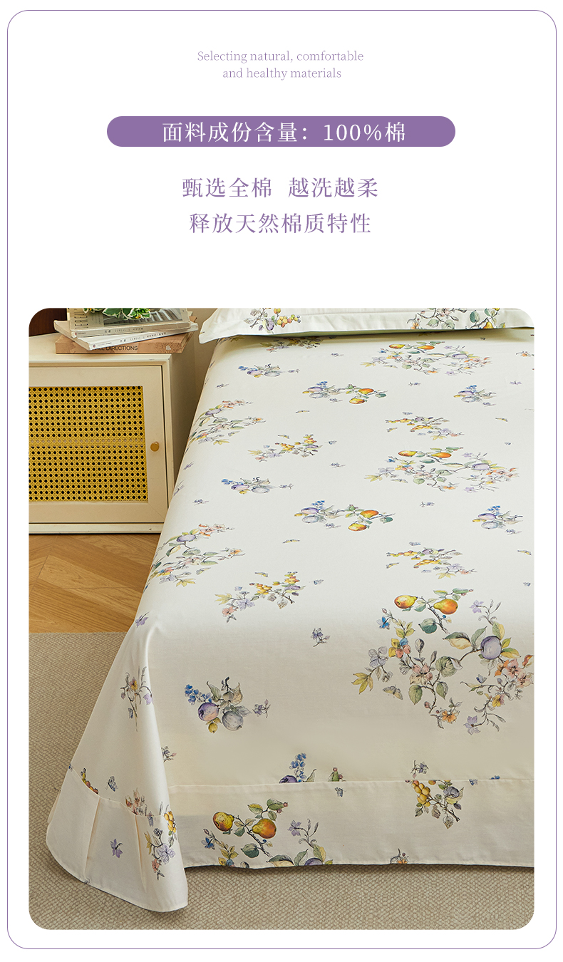 元元家居(元元被业) 2026新款全棉13372套件及单品【印花款】-单床单 知夏