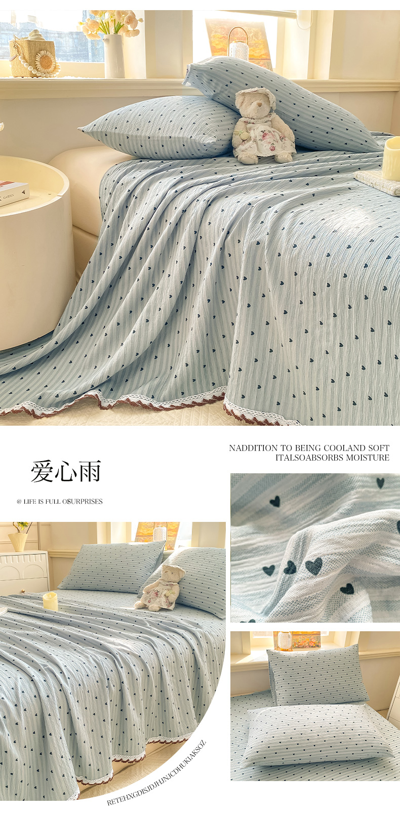 (总)眠势力 2026新款双层纱床笠单件云感皱皱纱床罩三件套床垫保护套,紫雾花汀,缤纷彩结,彩色心情,草莓蝴蝶结,春野织梦,哈喽猫咪,海盐奶猫,花漾草莓,金蝶逐影,萌兔乐园,青樱兔语,向云端,星梦甜心,幸运小马,紫芋南瓜,组合图 仅供参考