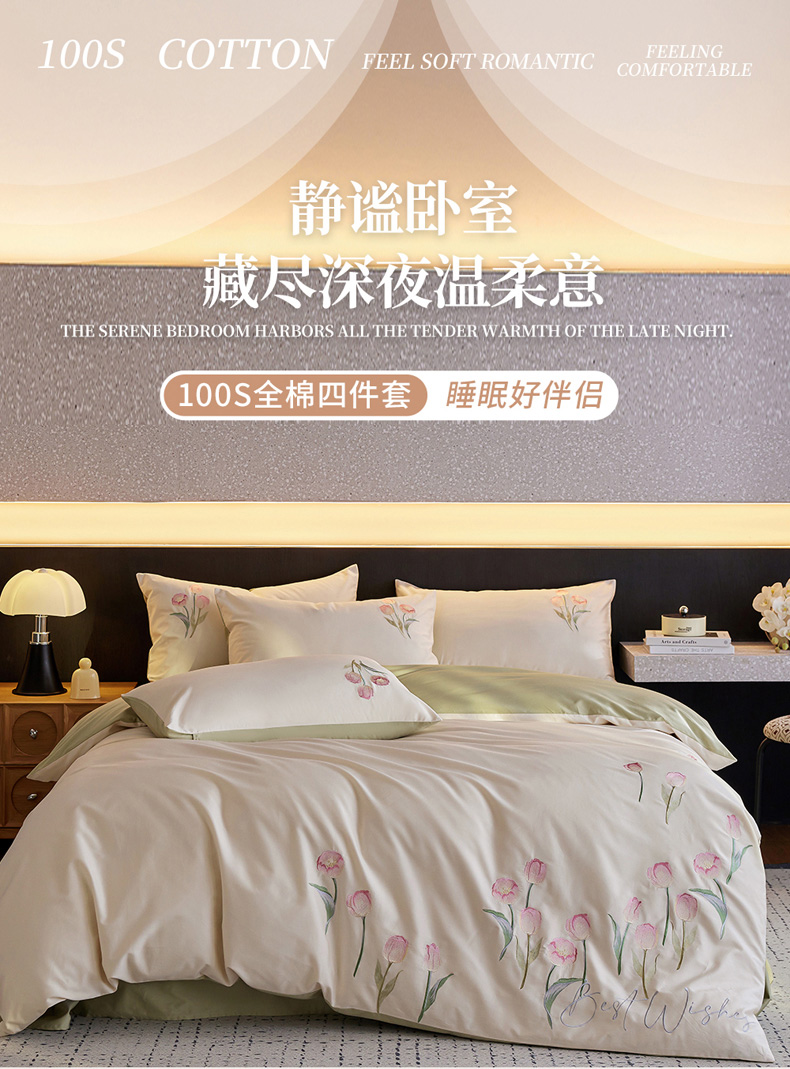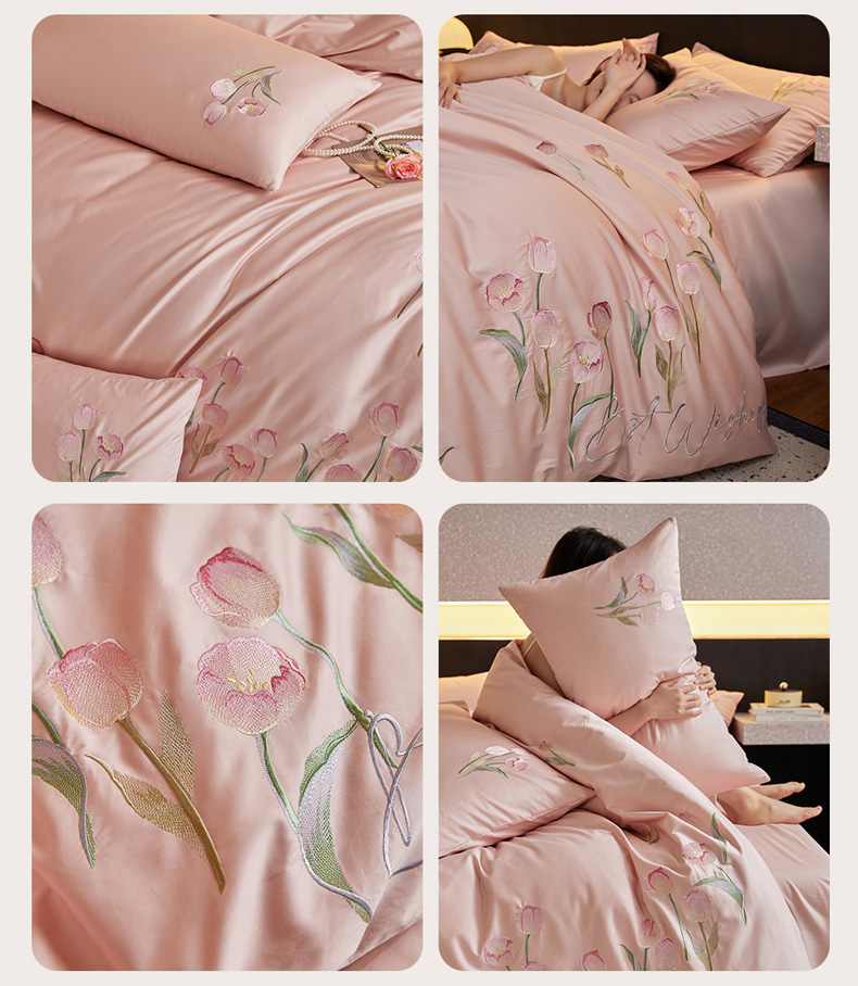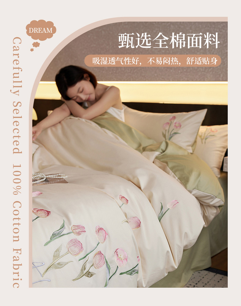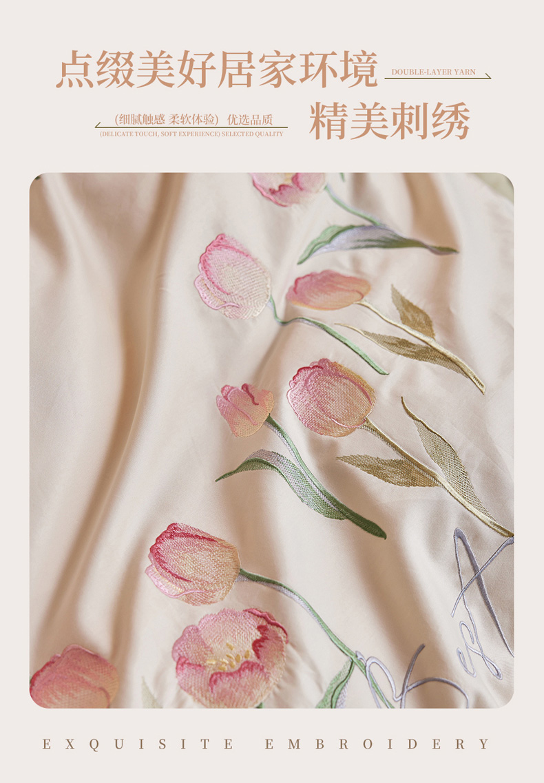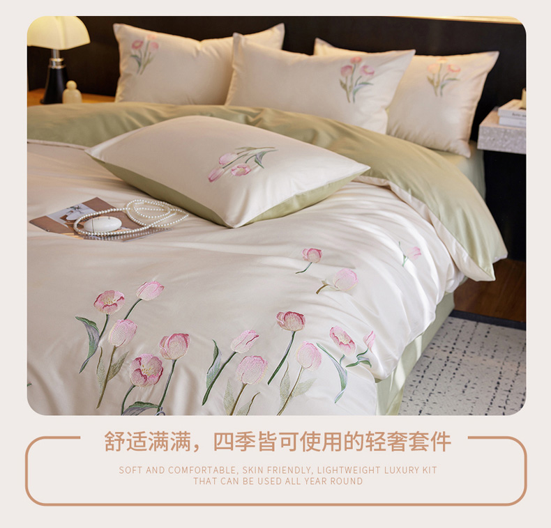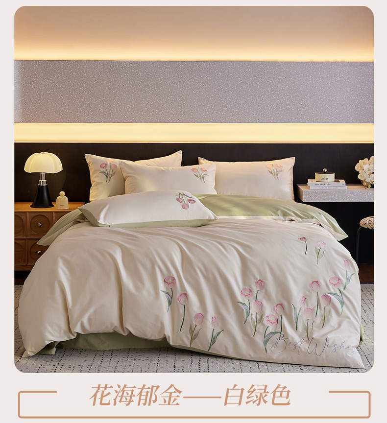 (总)爱缦 2026新款100S全棉CR工艺极简轻奢刺绣四件套-花海郁金系列风格二(券后控价:标准288,大号308),花海郁金-白粉色,花海郁金-白绿色,花海郁金-粉色,花海郁金-蓝色