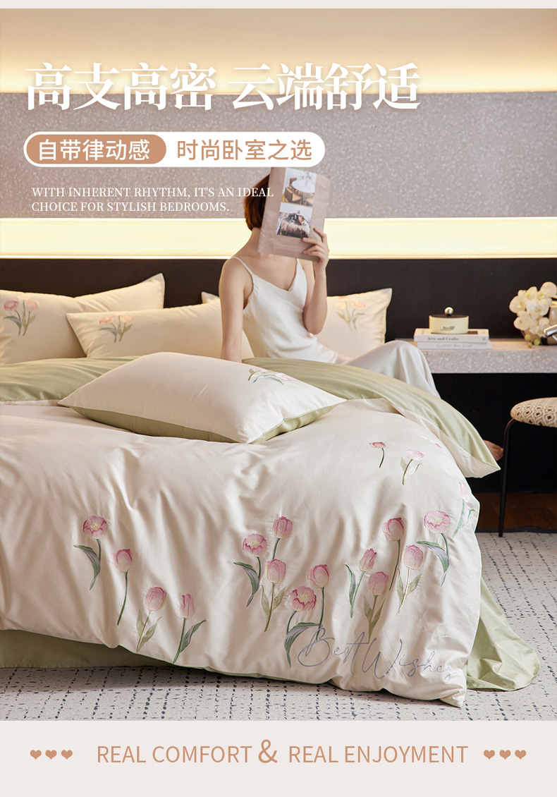 (总)爱缦 2025新款花草自春风系列100支新疆长绒棉四件套,柏林少女,清水芙蓉,云朵吐司