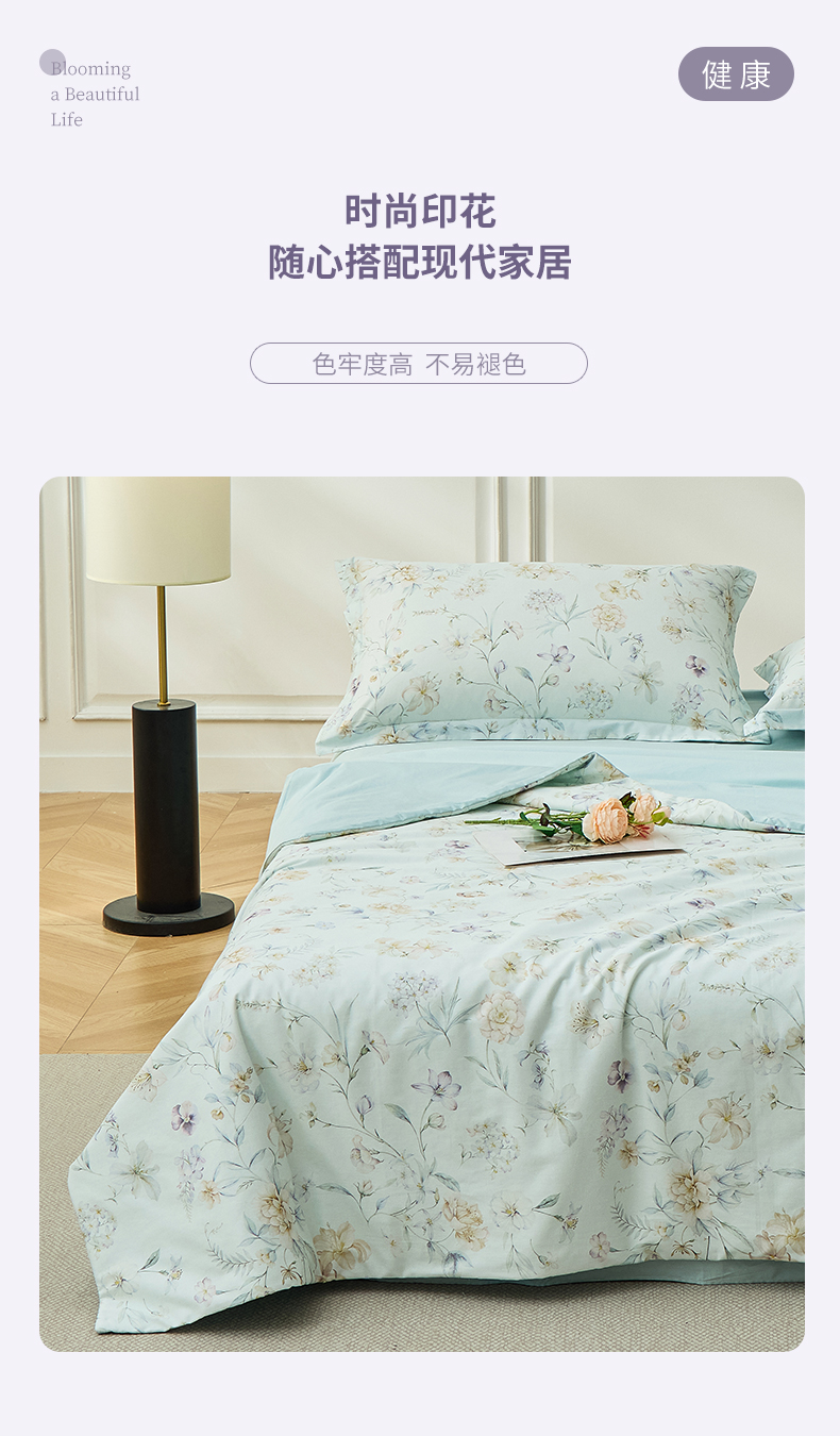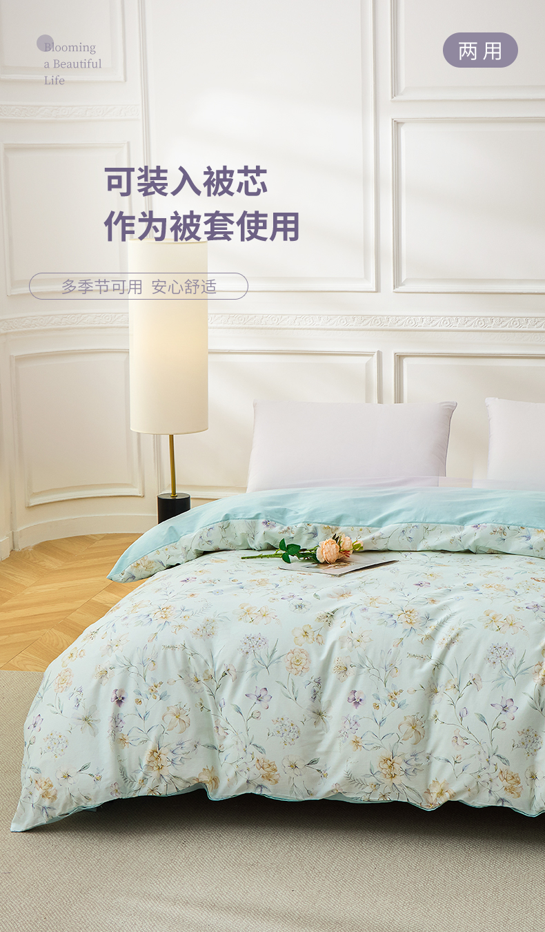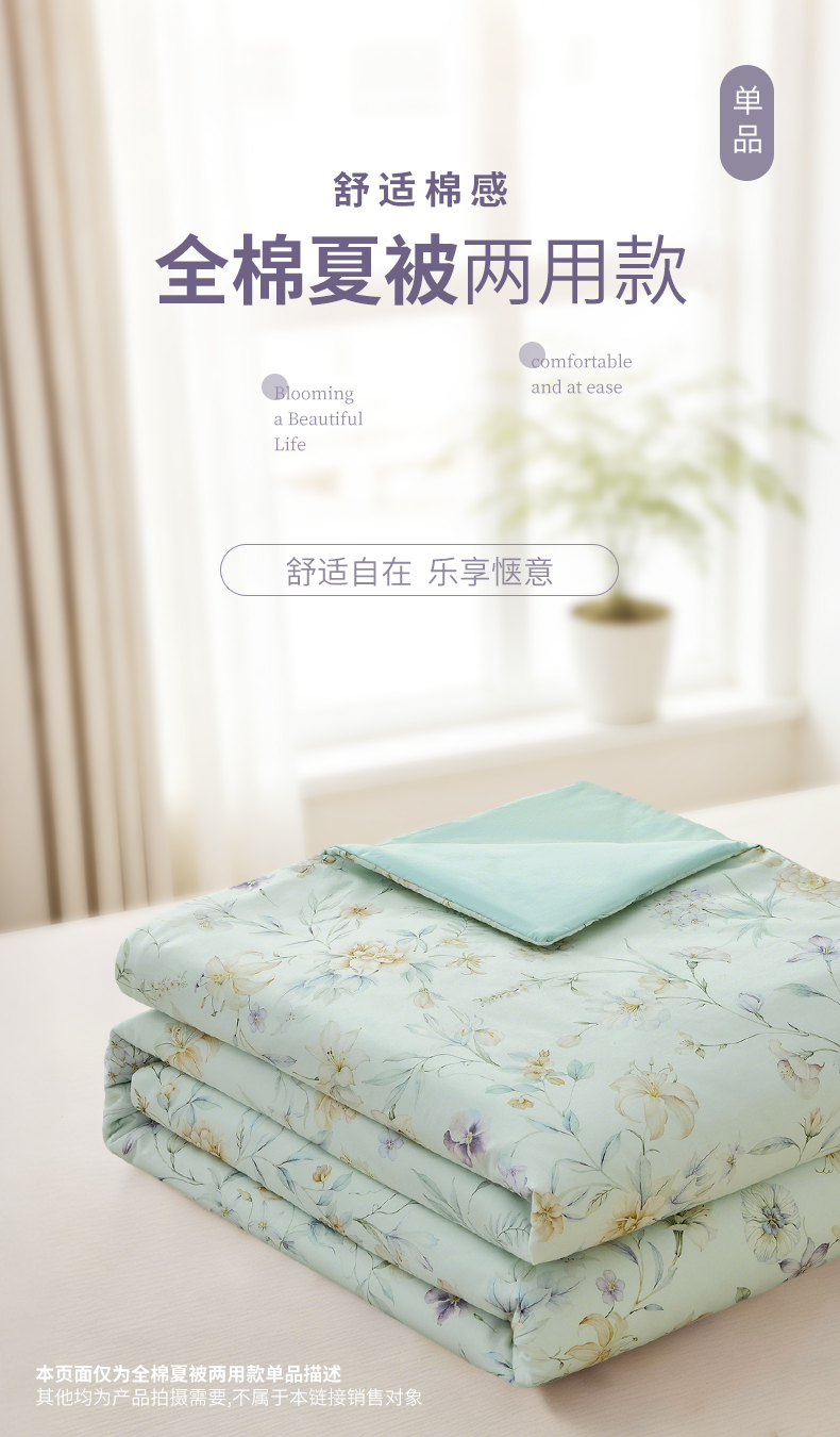 元元家居(元元被业) 2026新款全棉纯棉13372印花两用夏被夏凉被空调被 春晓绿