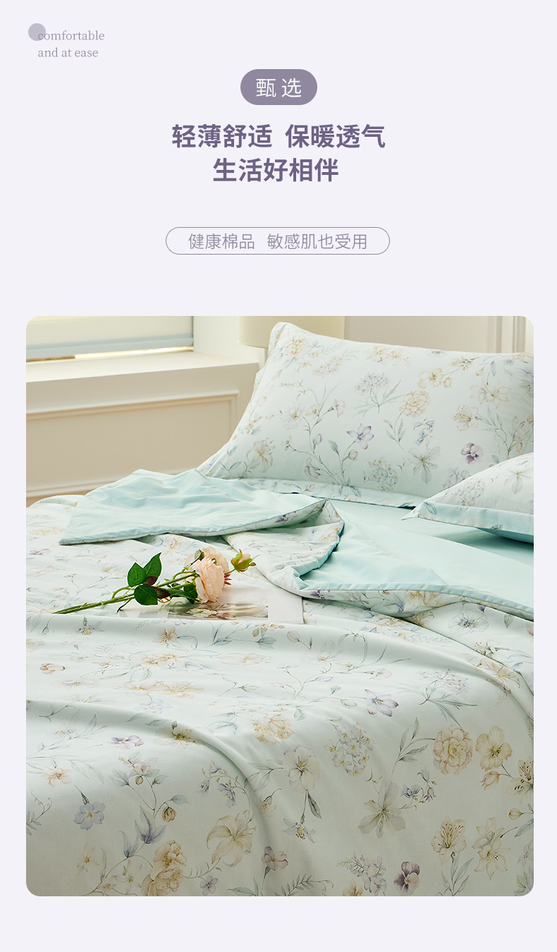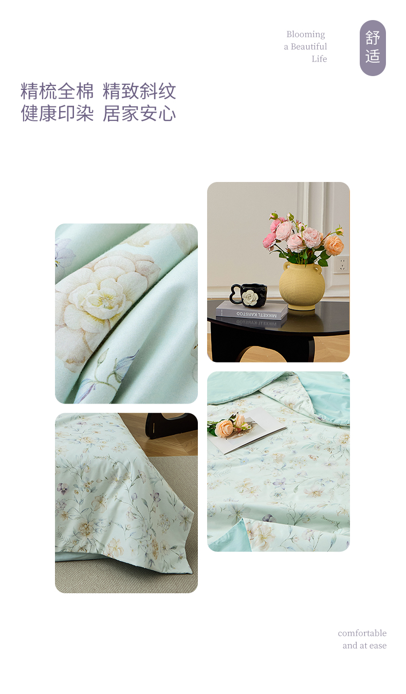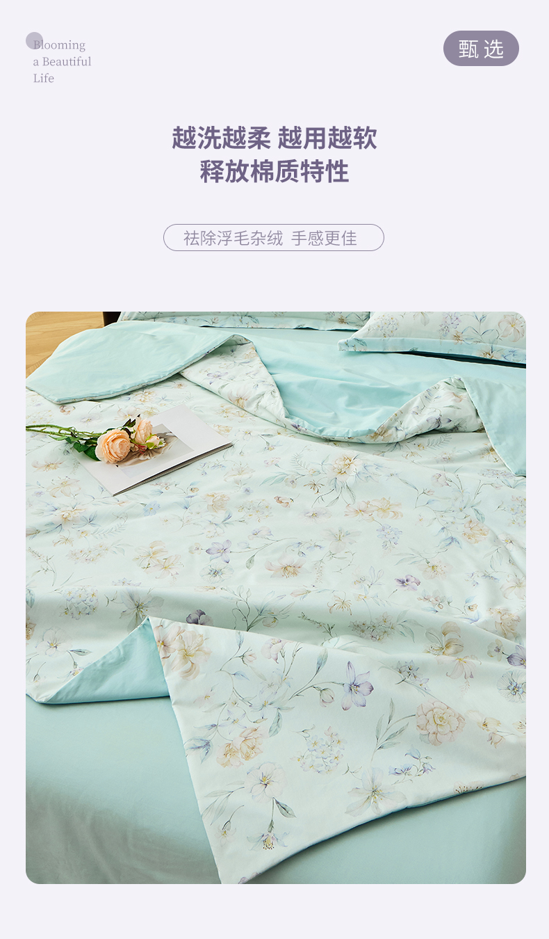 元元家居(元元被业) 2026新款全棉纯棉13372印花两用夏被夏凉被空调被 春晓绿