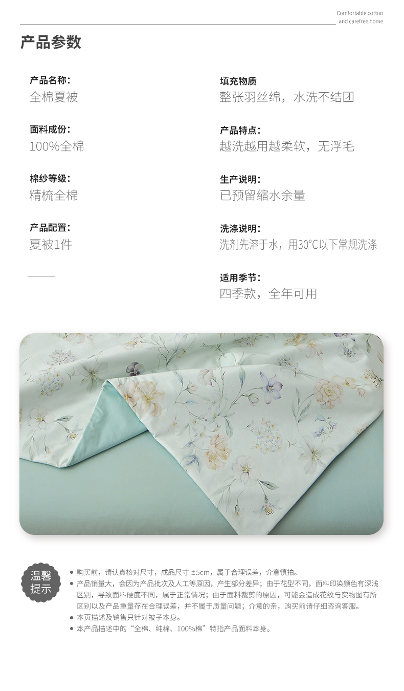 商品名称:元元家居(元元被业) 2026新款全棉纯棉13372印花两用夏被夏凉被空调被 春晓绿