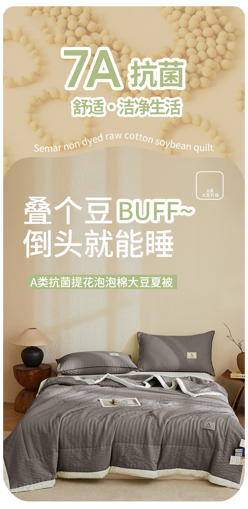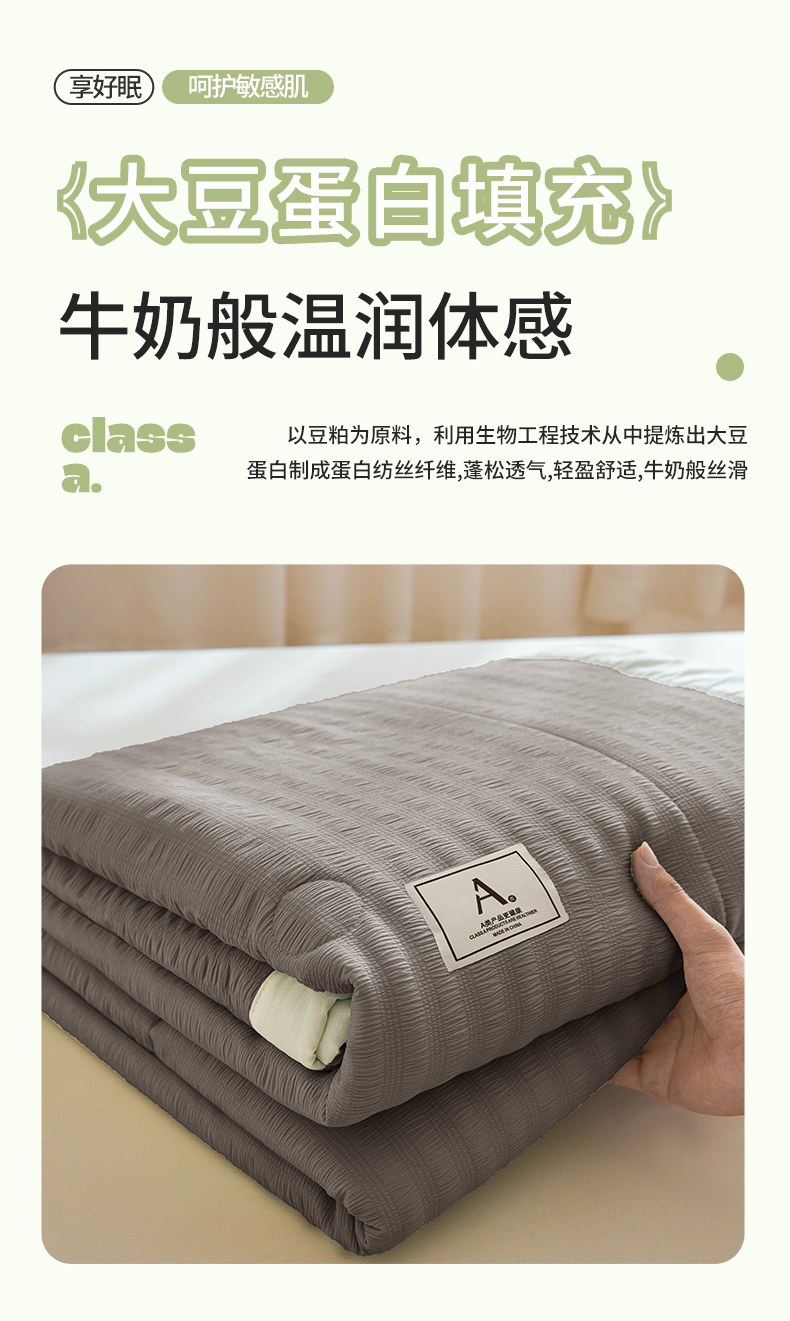 (总)欢乐季 2026新款7A抗菌A类双喷提花泡泡棉大豆被四季被+被芯(可以开发票—专票8个点),高级灰,凝脂白,柔和粉,仙踪绿