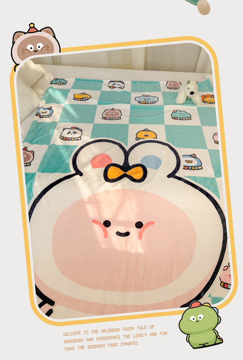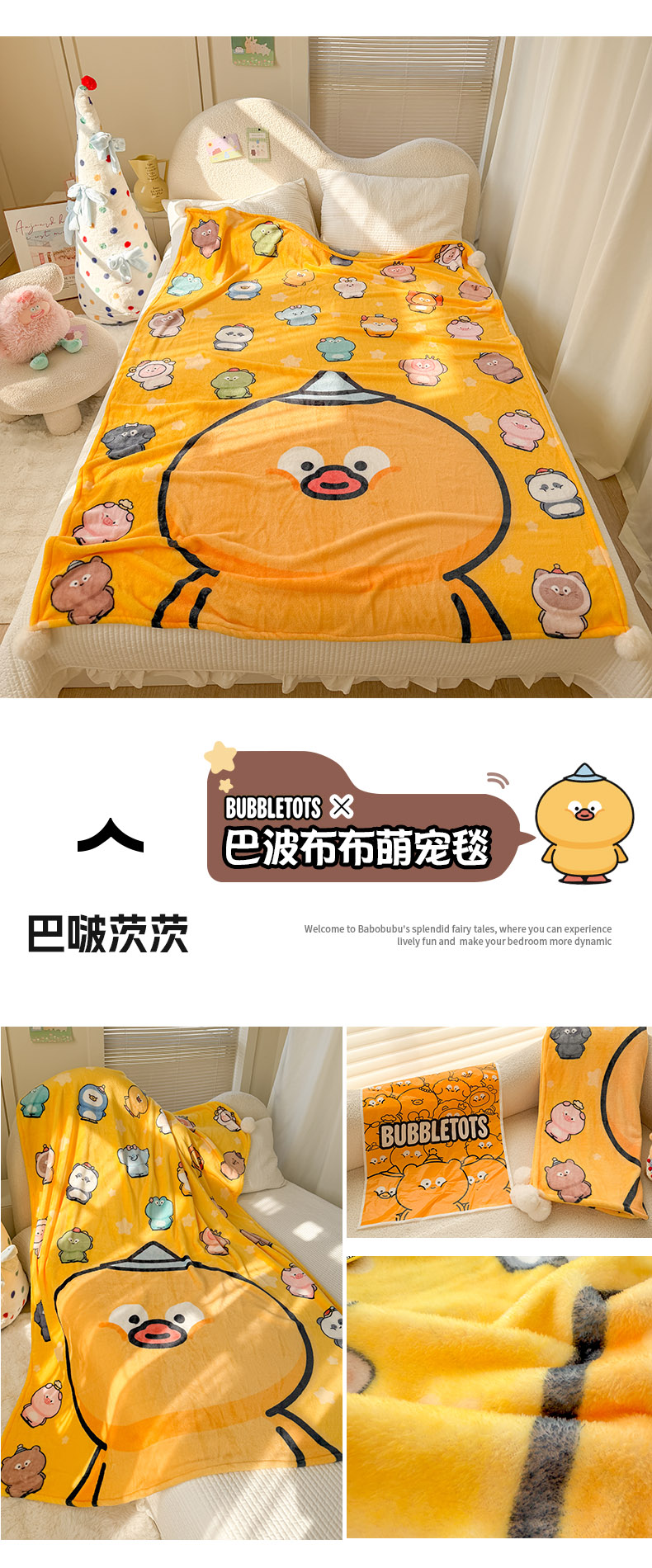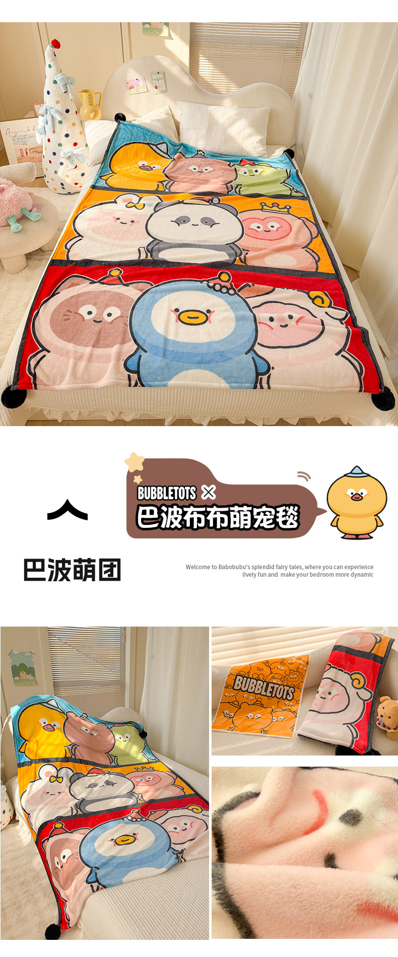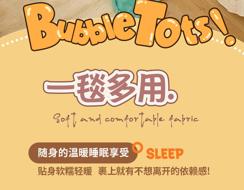(总)潮邦创意家居 2026新款星眠绒单层双面球毯-BubbleTots巴波布布独家授权-第一批 控价:100*150cm不得低于69元 150*200cm不得低于89元,巴波萌团,巴波桃桃,巴波众萌,巴啵茨茨