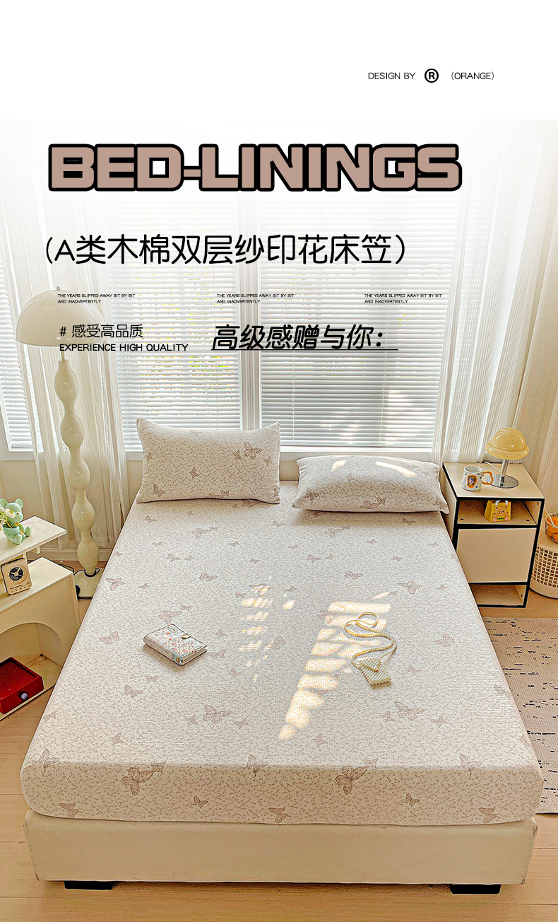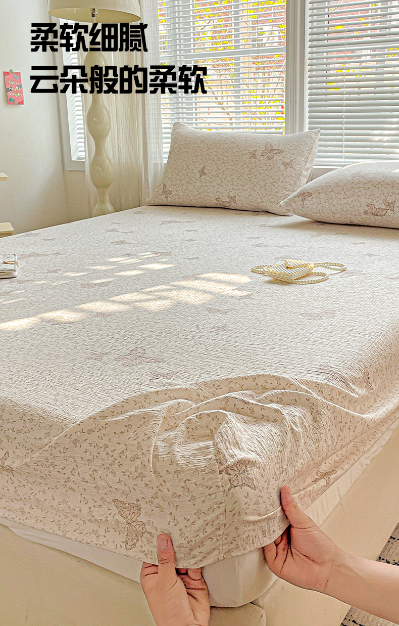当前位置: 91家纺网 > 商品网购 > 床上用品 > 床笠 > 优选 2026新款ins小清新木棉双层纱印花床笠床垫保护罩枕套三件套 蝴蝶谷