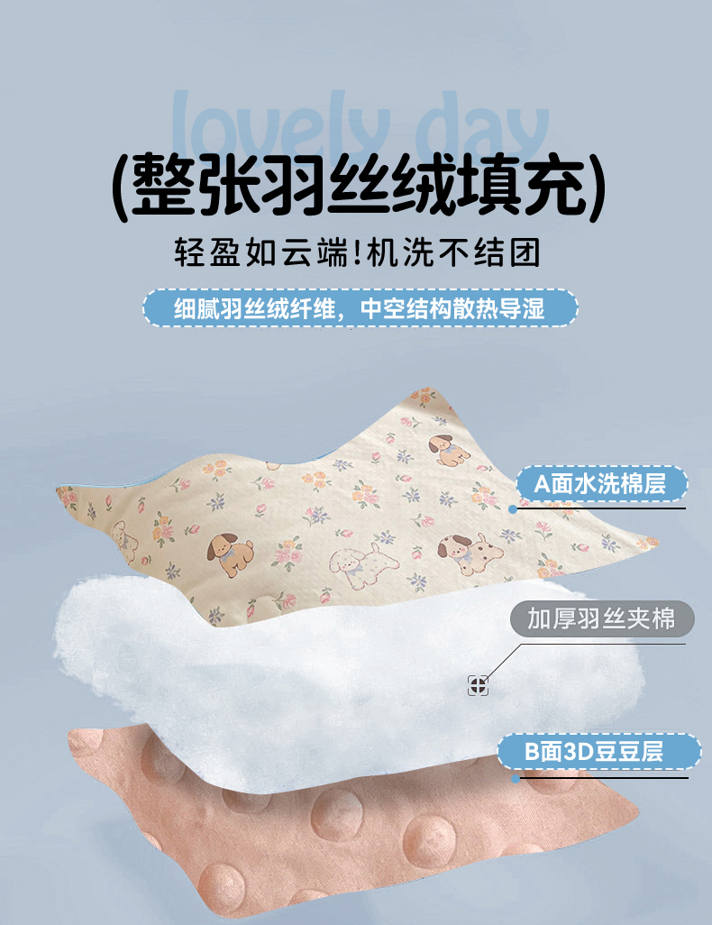 当前位置: 91家纺网 > 商品网购 > 被子 > 夏被 > 盛秋家纺 2026新款A类水洗棉豆豆夏被系列二 田园萌狗+奶油粉