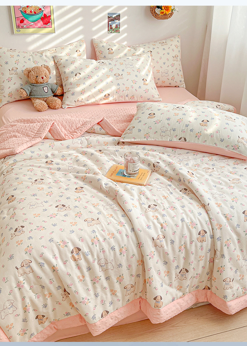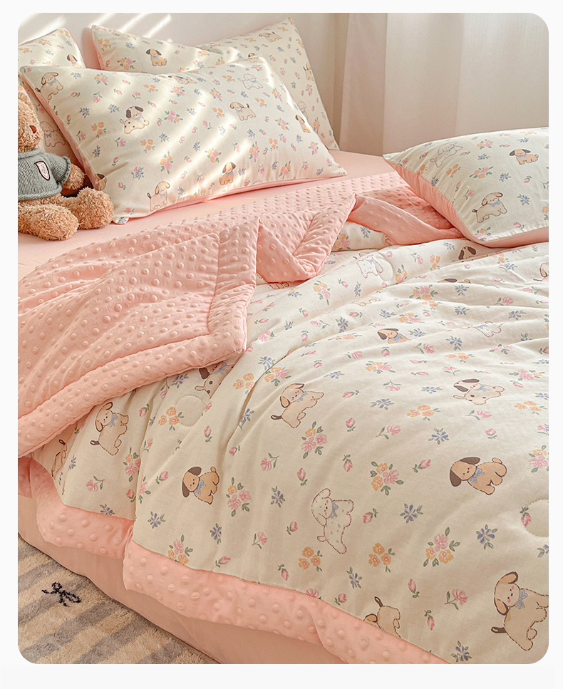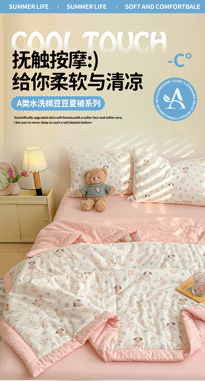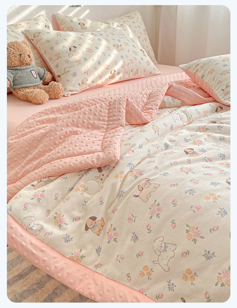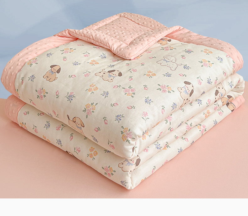 盛秋家纺 2026新款A类水洗棉豆豆夏被系列二 田园萌狗+奶油粉