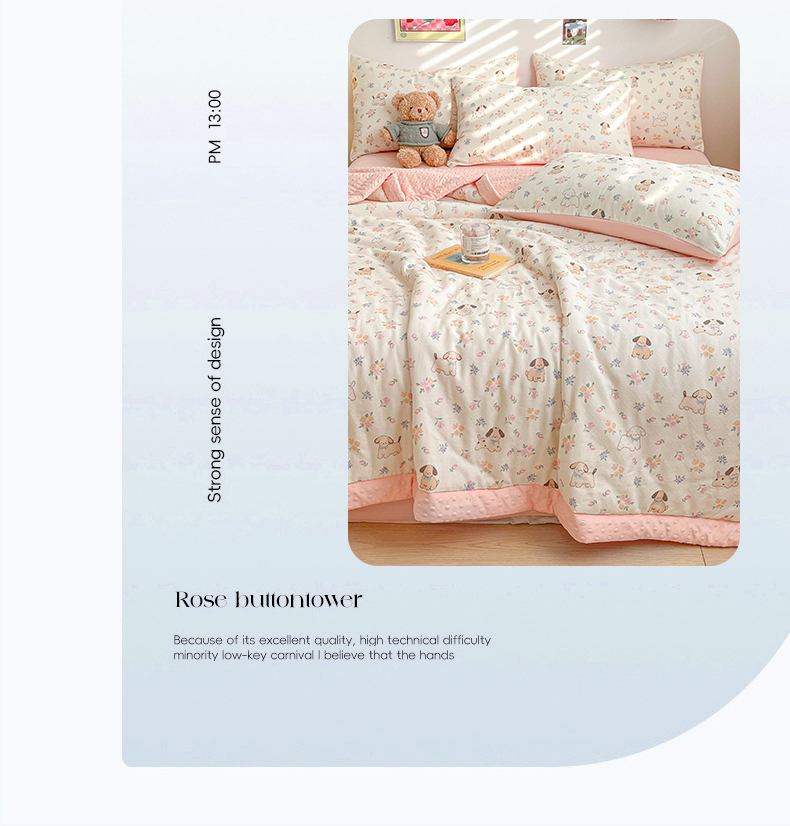 • 91家纺网 家纺一手货源 找家纺 盛秋家纺 2026新款A类水洗棉豆豆夏被系列二 田园萌狗+奶油粉