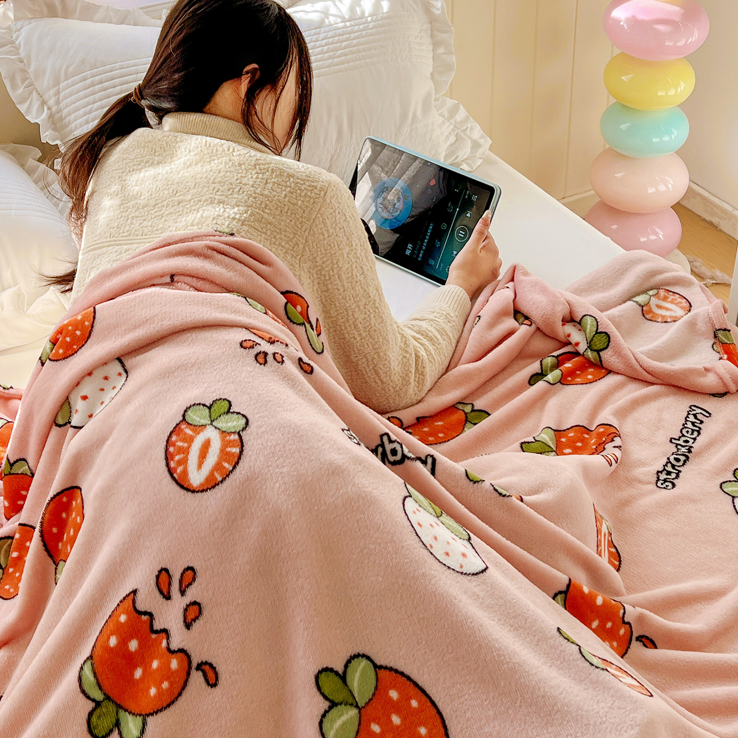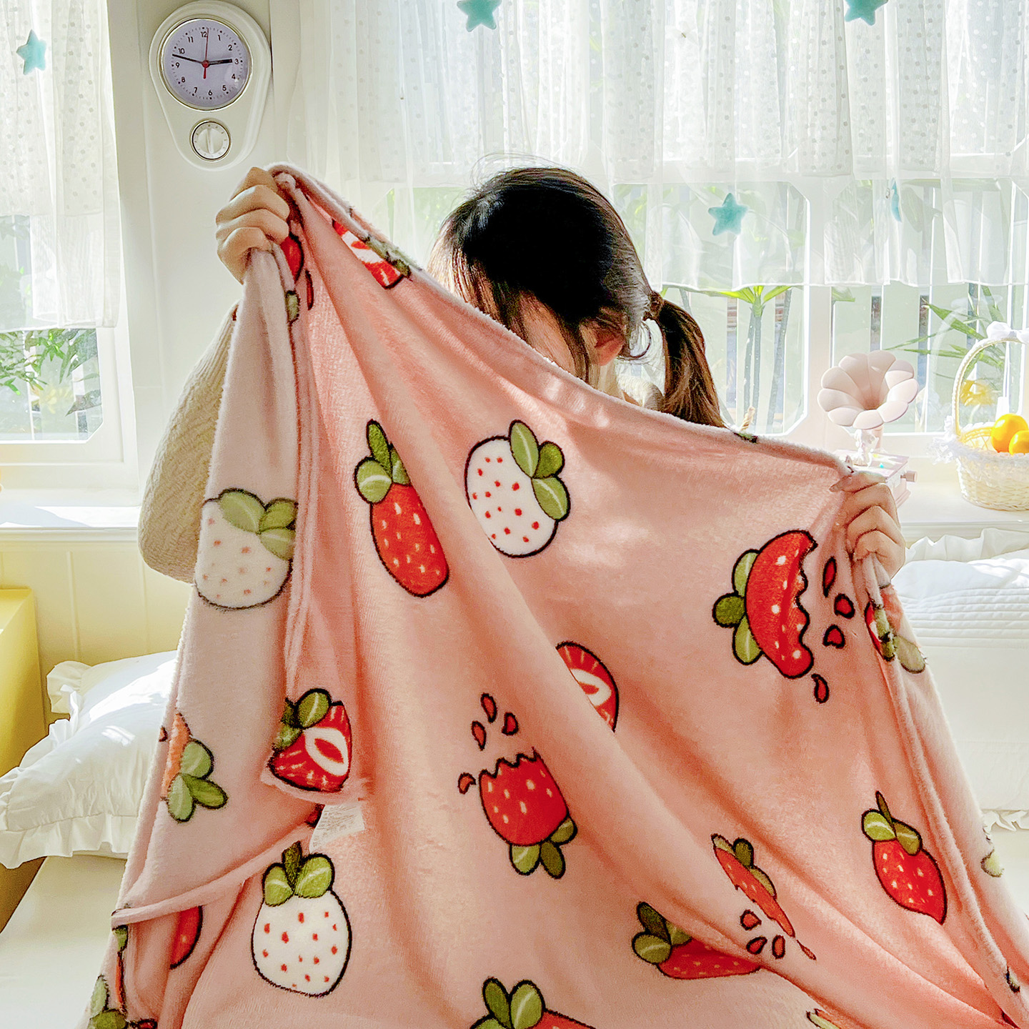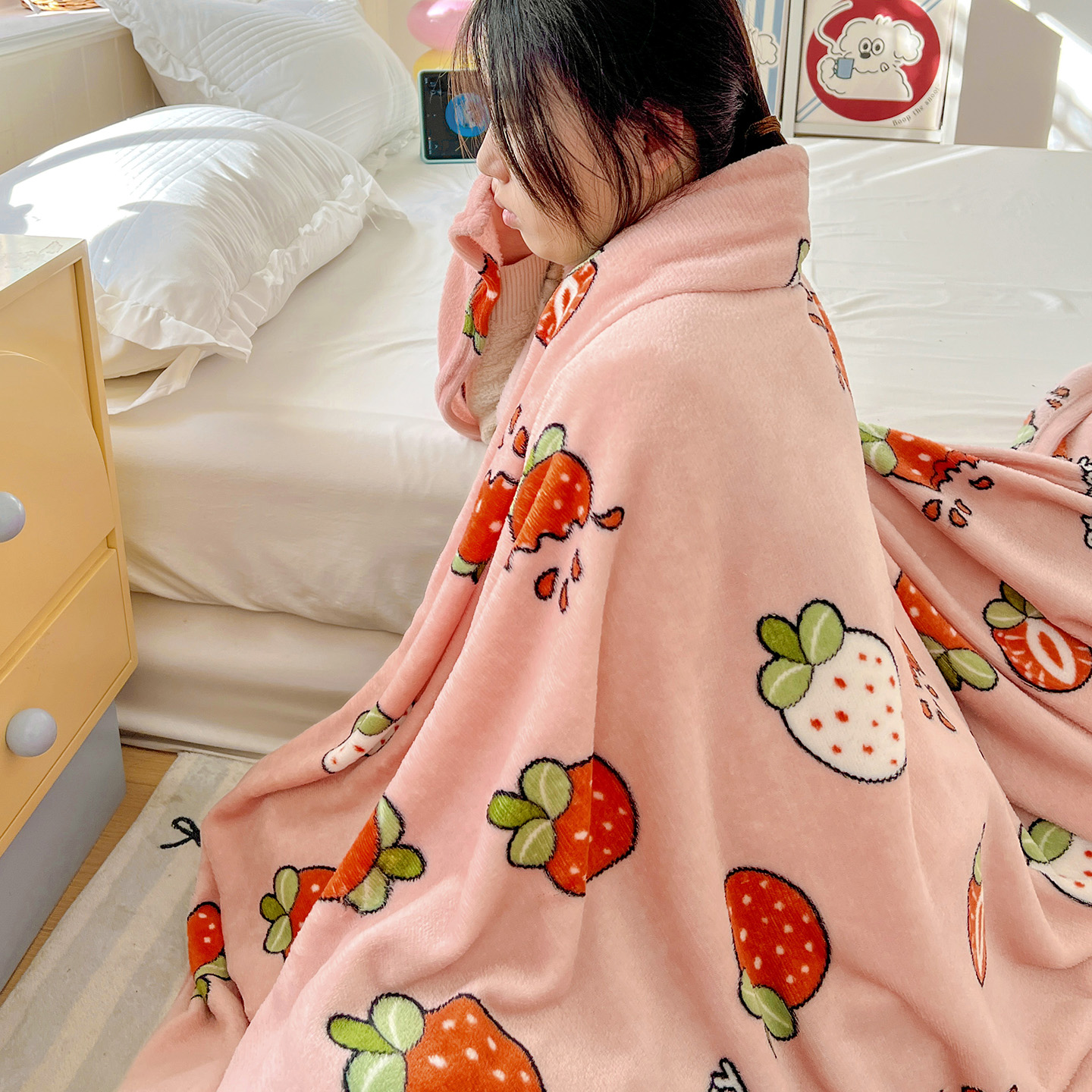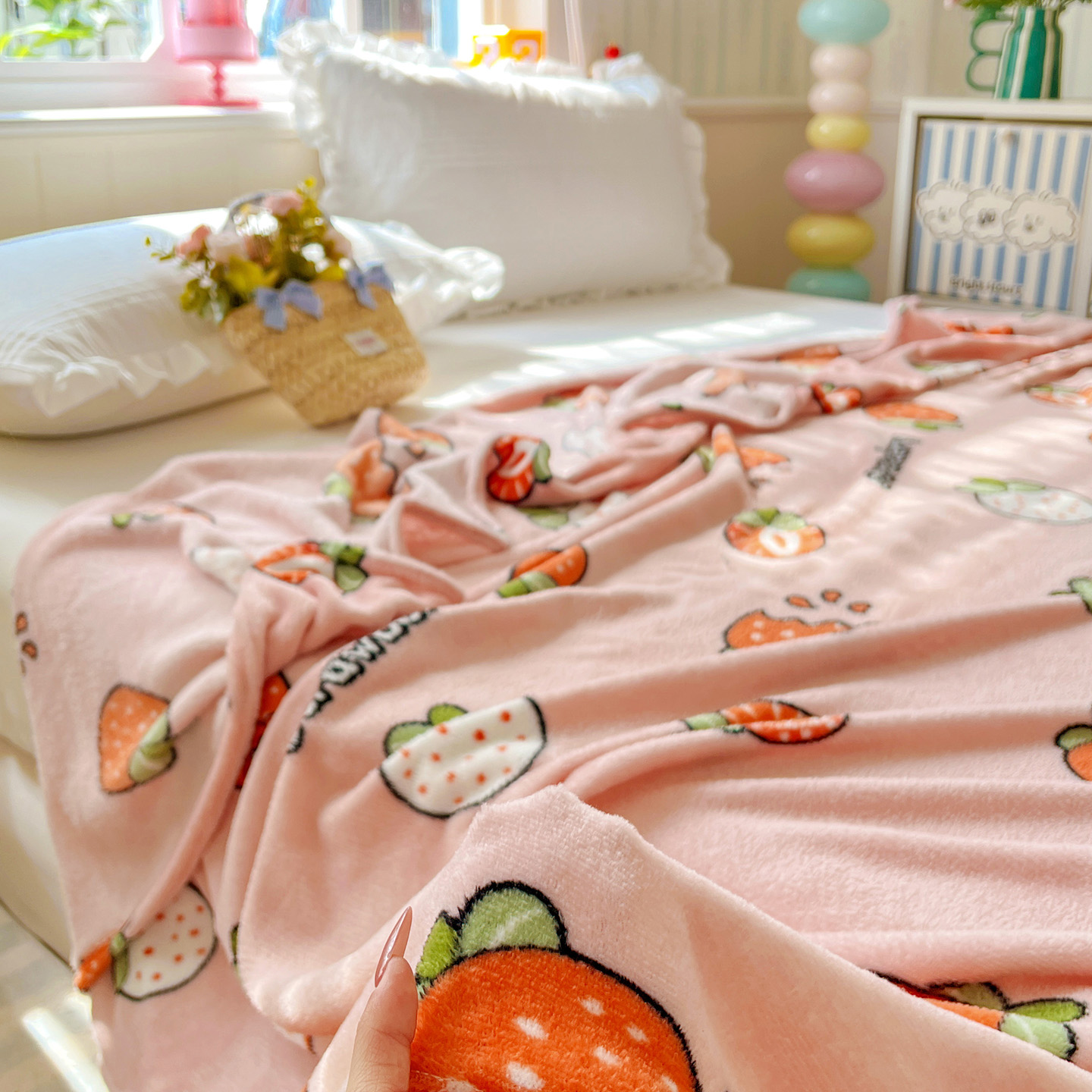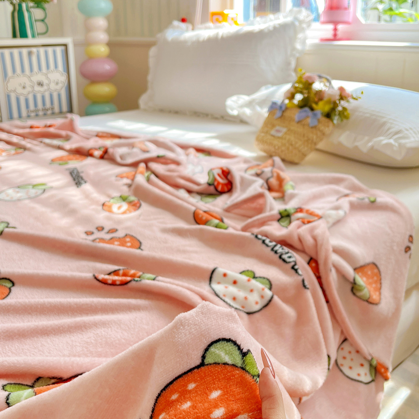 商品名称:悦织湾家纺 2026新款印花法兰绒毛毯牛奶绒盖毯春秋空调毯儿童床单小被子 奶油草莓