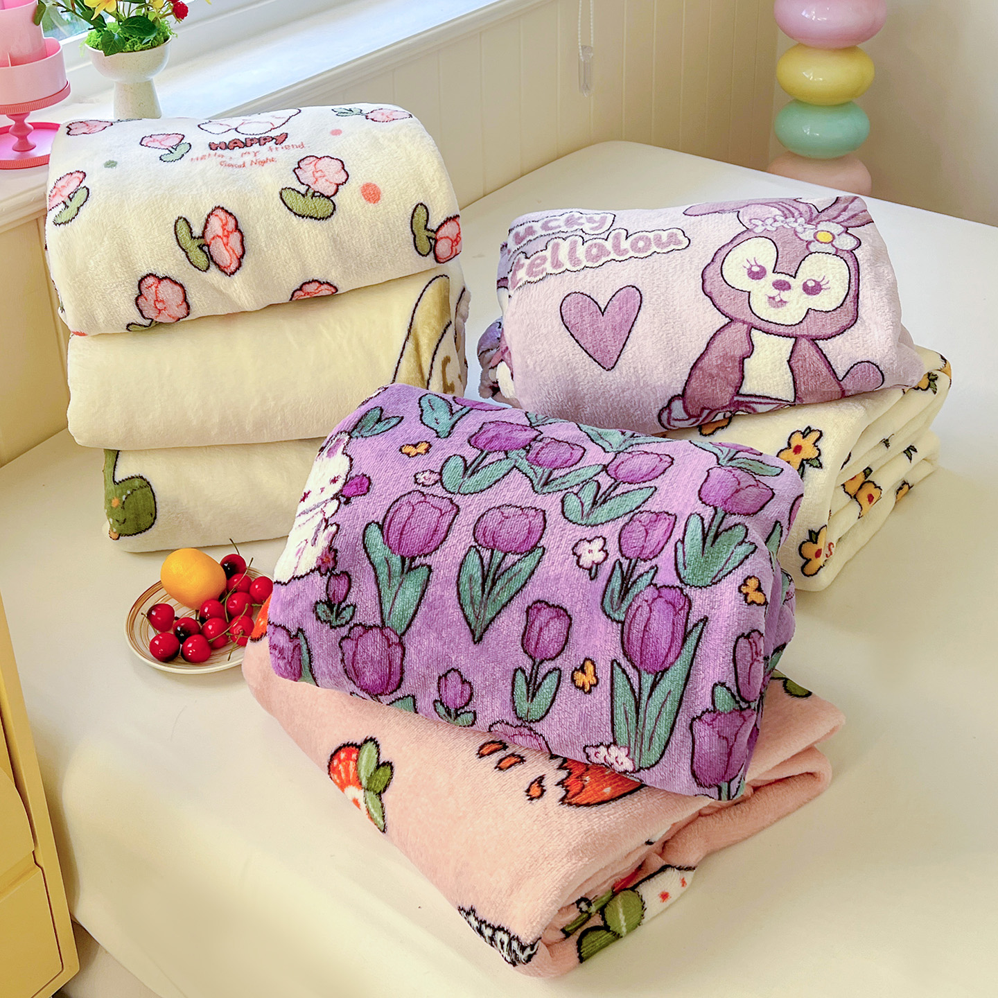 (总)悦织湾家纺 2026新款印花法兰绒毛毯牛奶绒盖毯春秋空调毯儿童床单小被子,爱心熊,丛林,花花世界,恐龙宝贝,奶油草莓,田园兔,甜蜜,幸运兔,英伦熊,郁金香,组合图