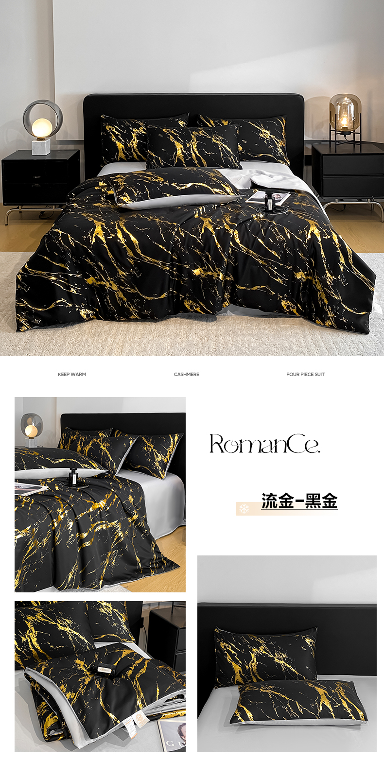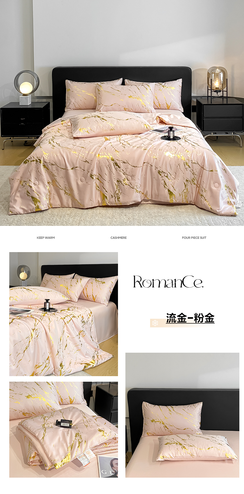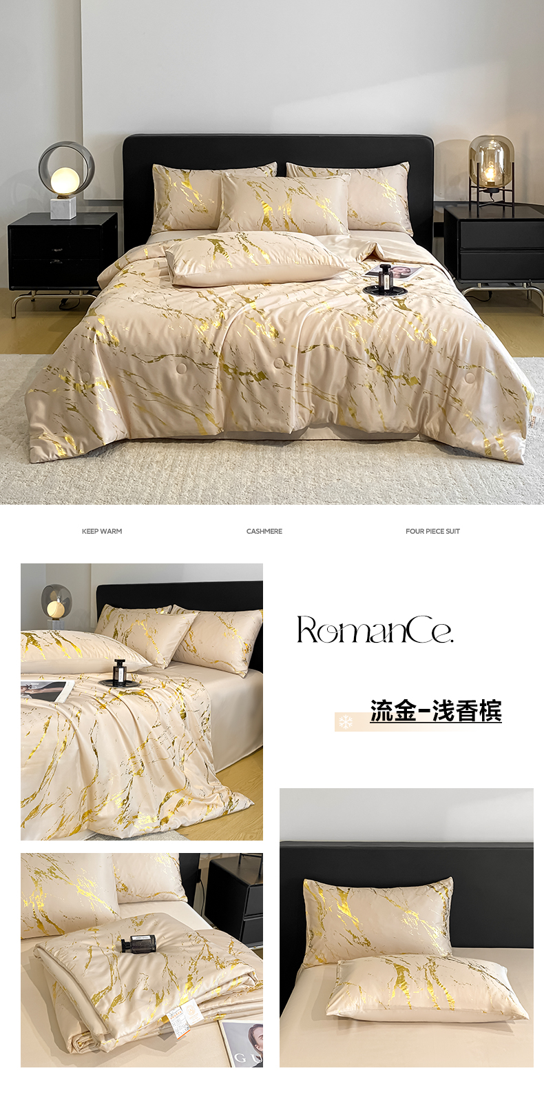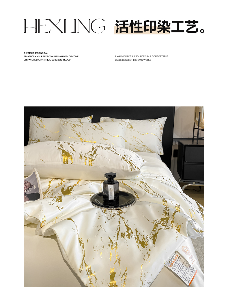 (总)宇航家纺 2026新款简约烫金冷淡风水洗真丝四件套-大理石纹系列,大理石纹-白金,大理石纹-黑金,大理石纹-浅香槟,大理石纹-粉金,诧寂-墨黑,诧寂-奶白,诧寂-银灰