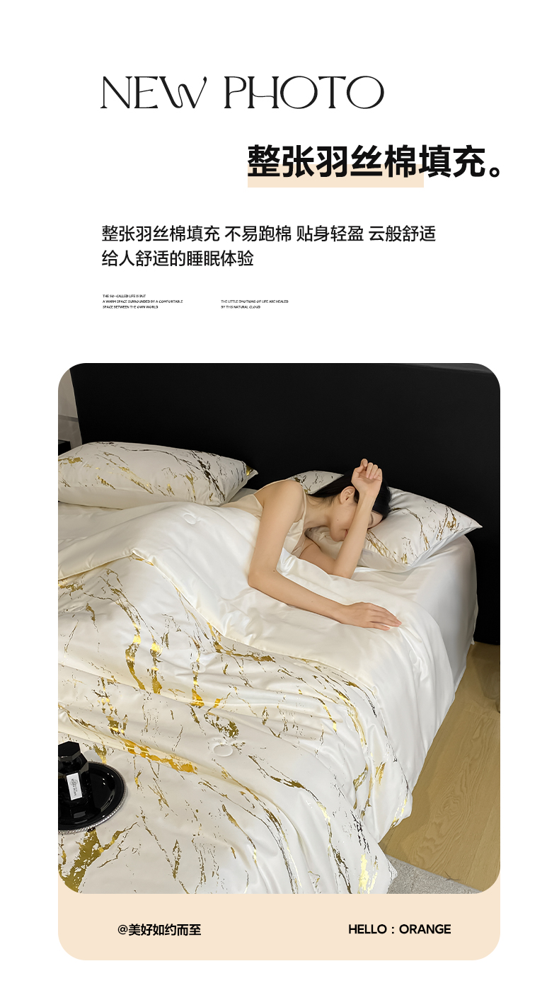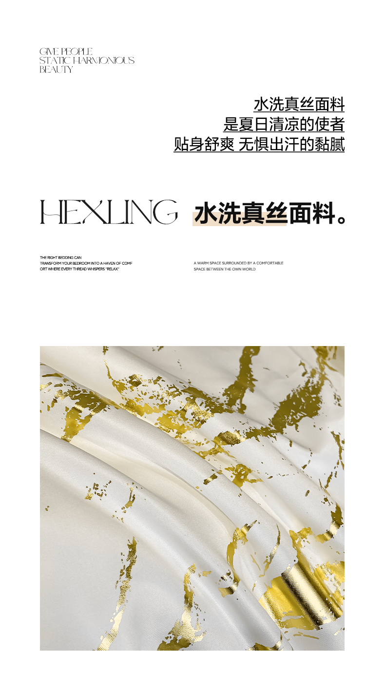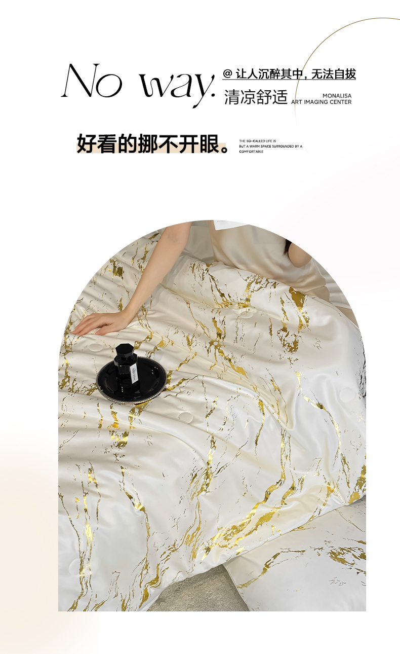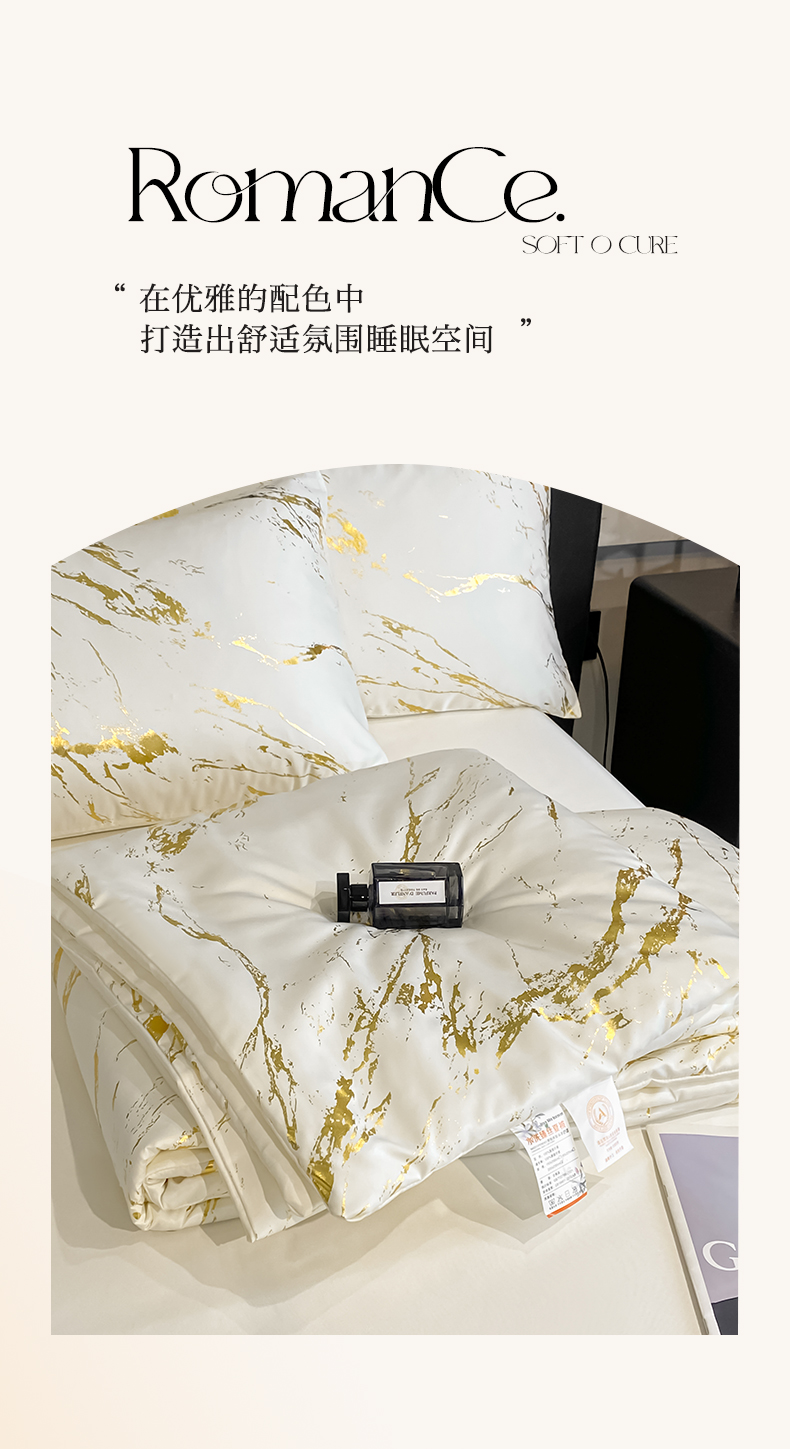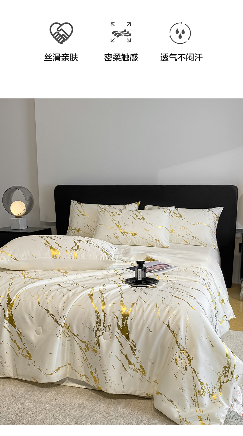 商品名称:(总)宇航家纺 2026新款简约大理石纹烫金水洗真丝夏被四件套