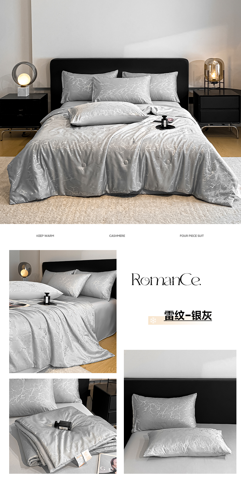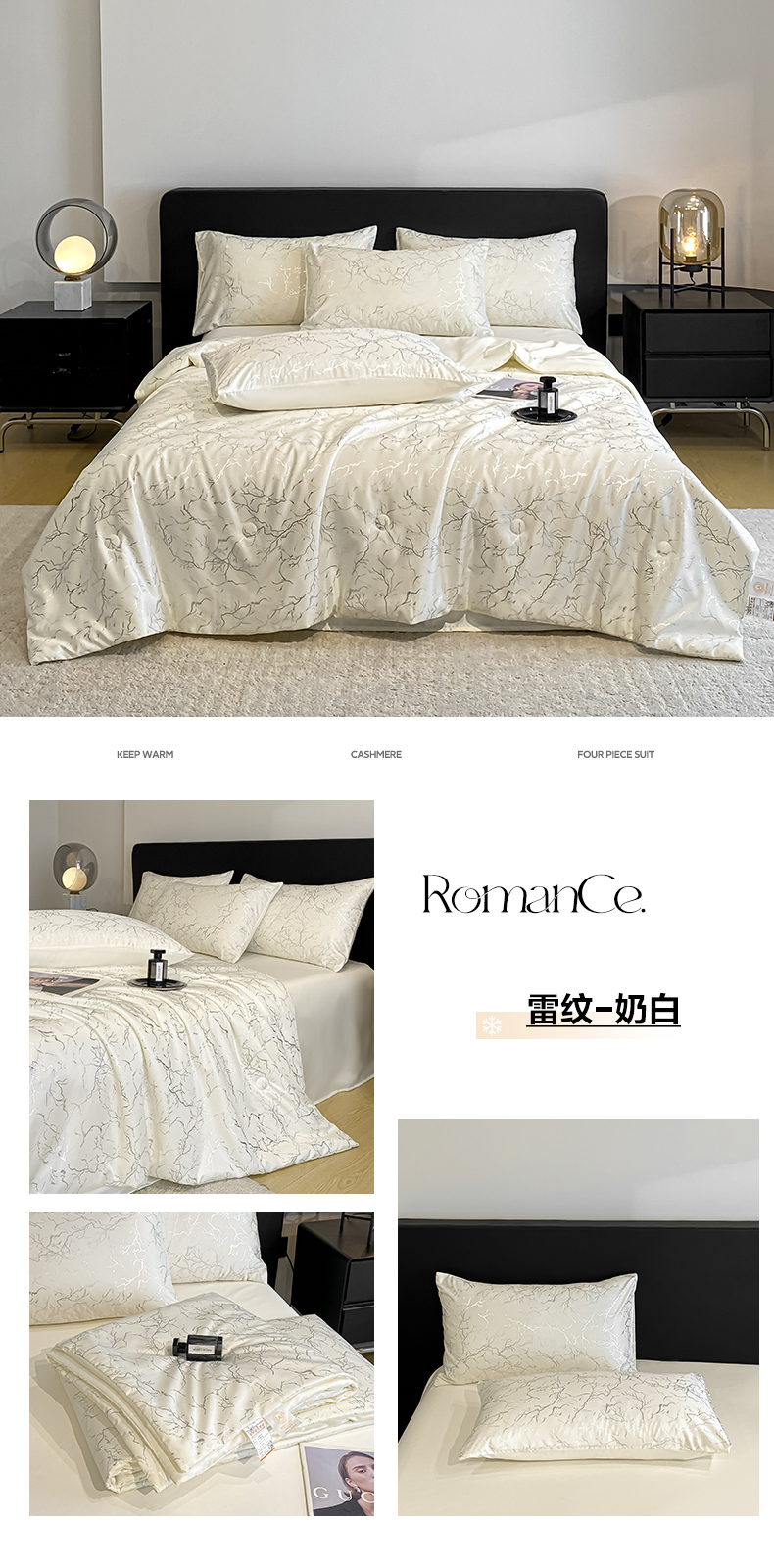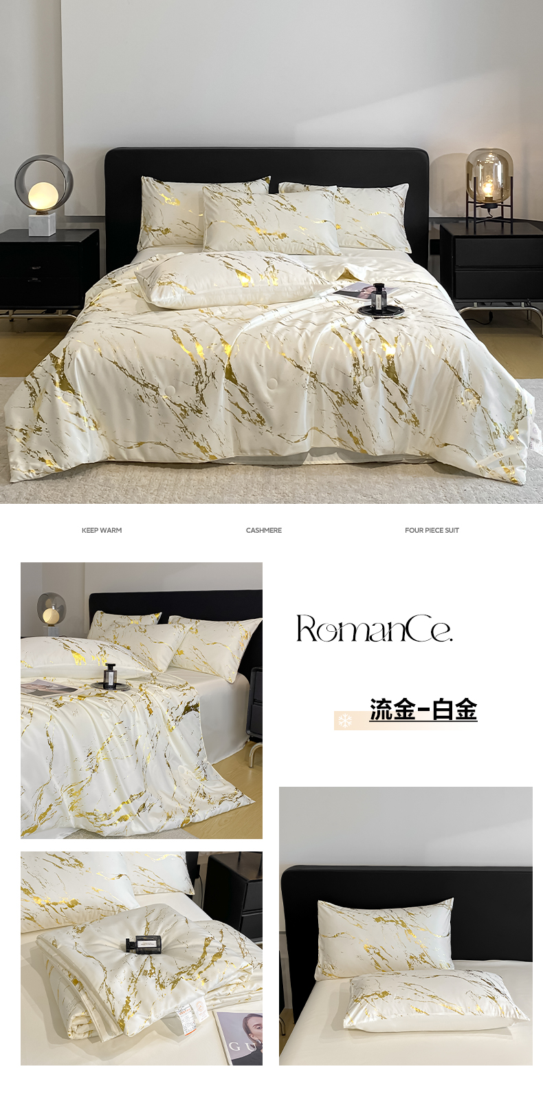 (总)宇航家纺 2026新款简约大理石纹烫金水洗真丝夏被四件套,流金-奶白,雷纹-墨黑,雷纹-奶白,雷纹-银灰,流金-粉玉,流金-墨黑,流金-浅香槟