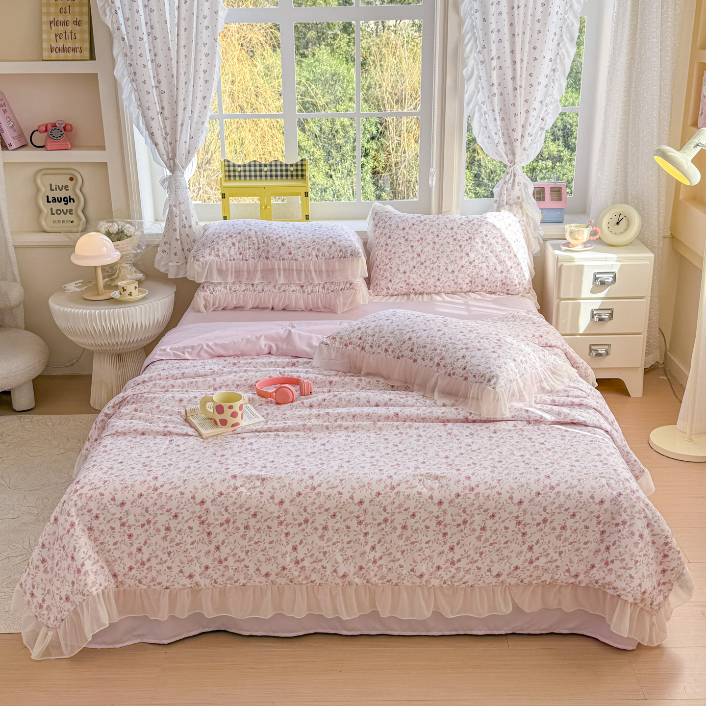 赛丽雅 2026新款美人纱法式花边夏被四件套凉感冰丝提花单双人夏被系列夏凉被空调被 朵朵