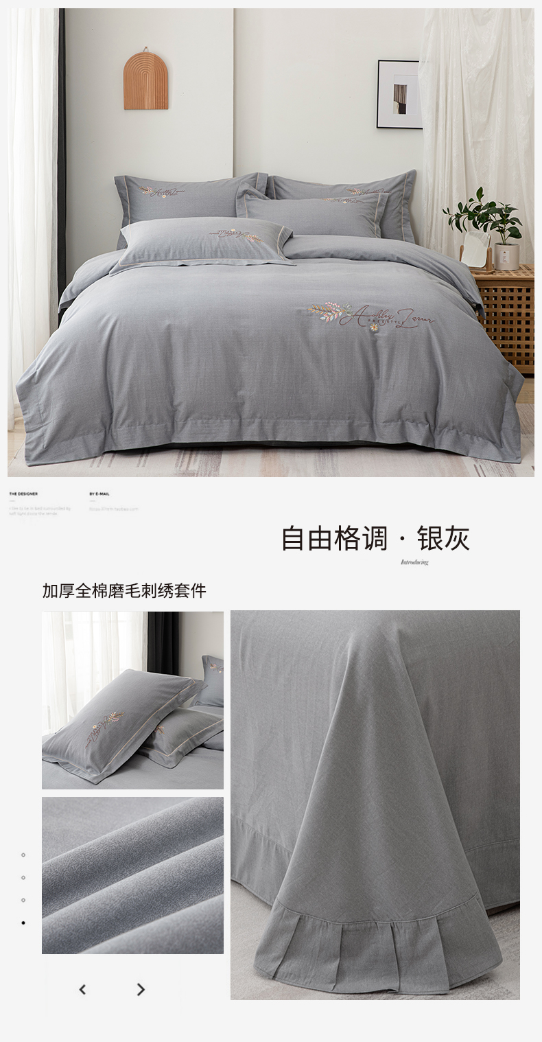 (总)缘舒家纺 2025新款全棉加厚工艺款绣花磨毛四件套,雪国春语-宝蓝,雪国春语-高级灰,雪国春语-浅绿,雪国春语-桃紫,自由格调-豆沙,自由格调-湖蓝,自由格调-橘色,自由格调-银灰