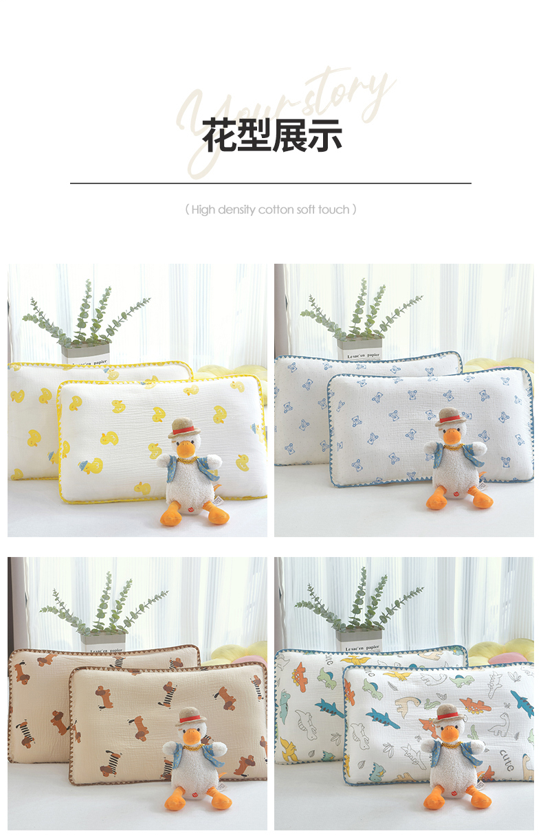 (总)兄弟坊 2026新款全棉皱皱纱枕套枕头婴儿枕幼儿园枕学生枕宝宝枕套枕芯,组合图仅供展示不可下单,小汽车,调皮狗,恐龙岛,腊肠狗,满天星,小花花,小玩偶,熊多多,元气鸭