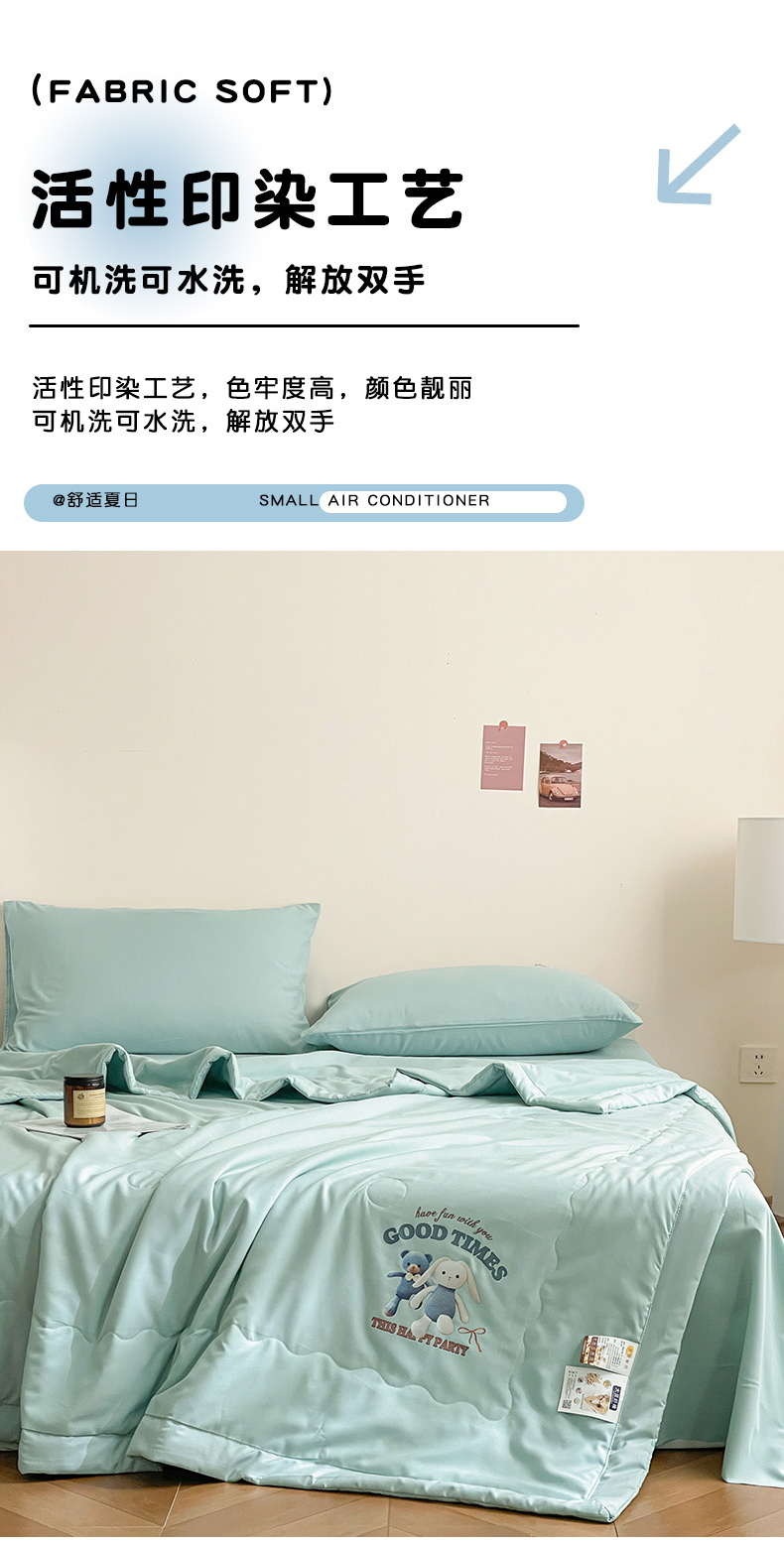 商品名称:易展家居 2026新款水洗棉大豆纤维夏被 布偶乐园-青色