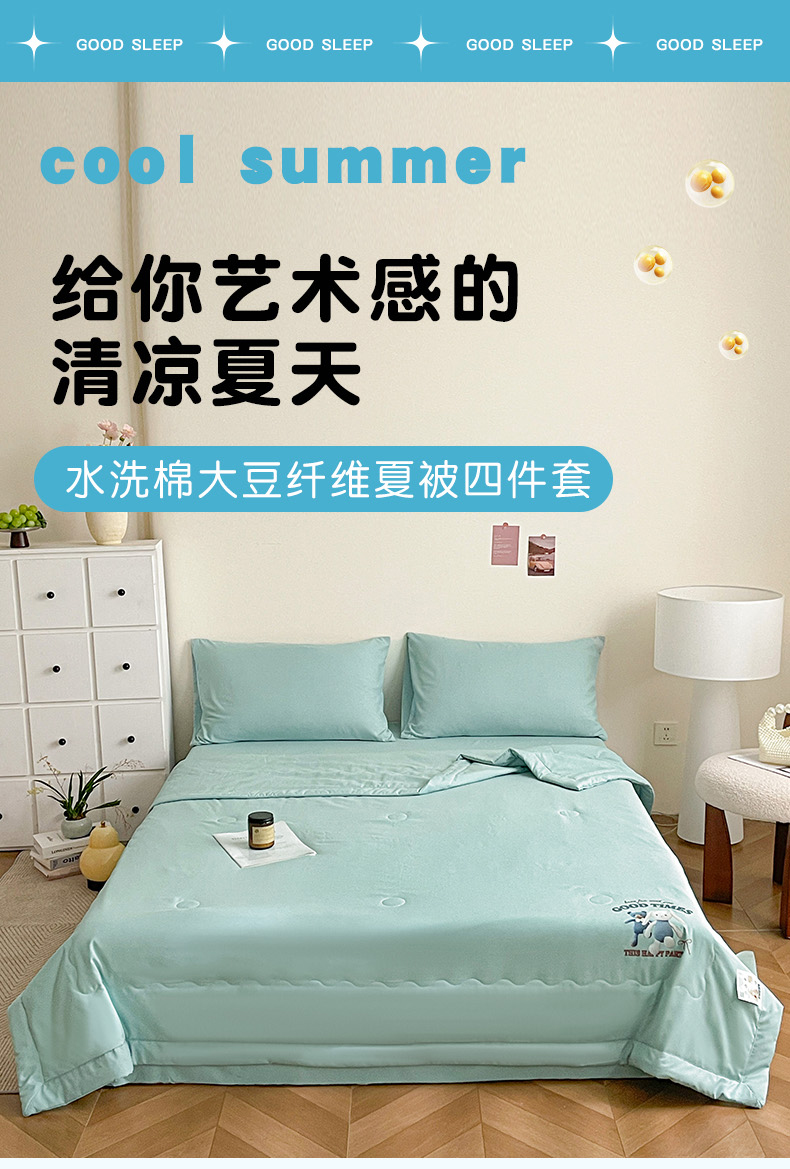 (总)易展家居 2025年新款水洗棉哪吒夏被,哪吒-奶昔白,哪吒-轻绿,哪吒-轻银粉,哪吒-轻银灰
