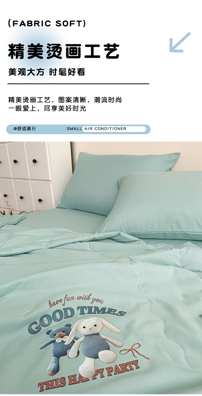 易展家居 2026新款水洗棉大豆纤维夏被 布偶乐园-青色